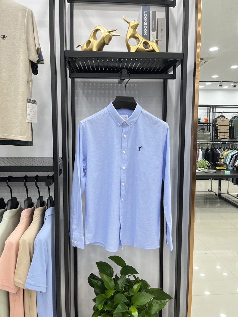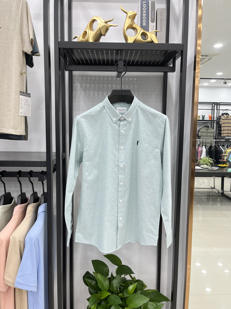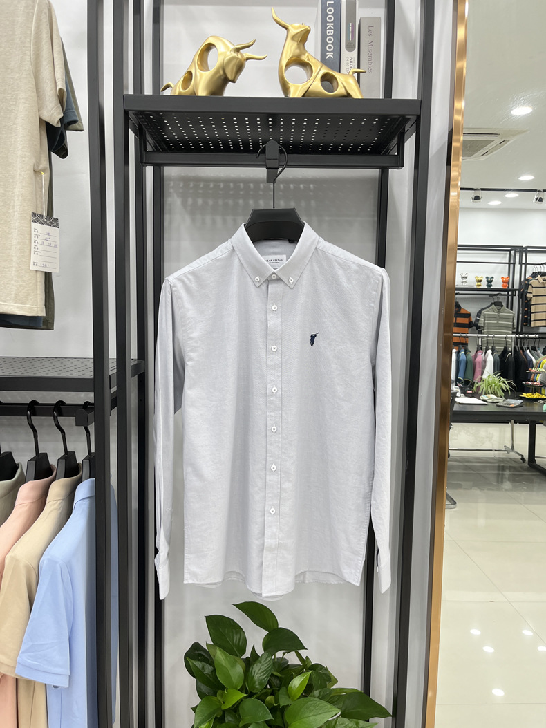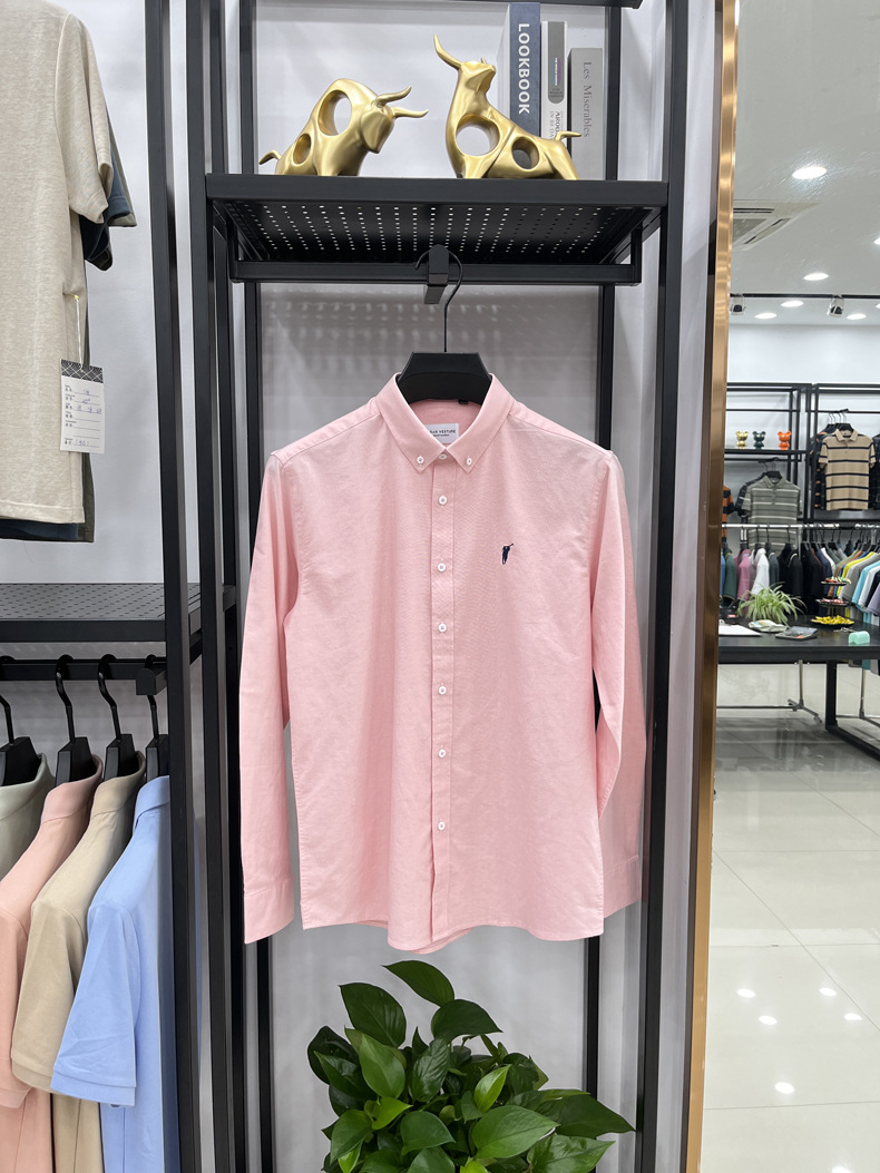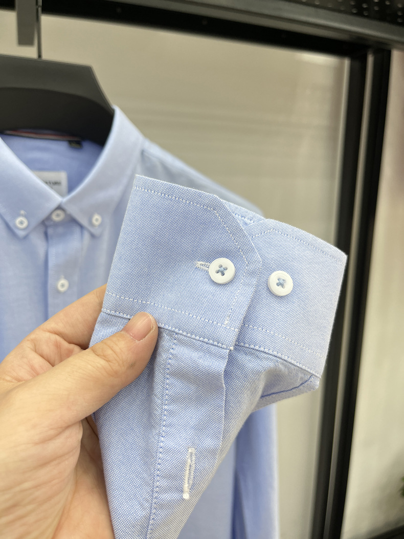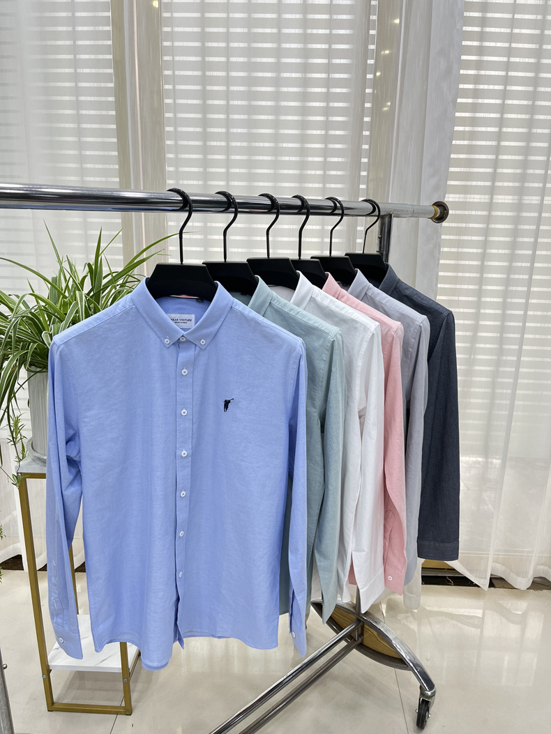 하이 엔드 100 면 남자 긴팔 셔츠 봄 2025 새로운 도착 자수 비즈니스 캐주얼 셔츠 솔리드 컬러 올 매치스토어 가기