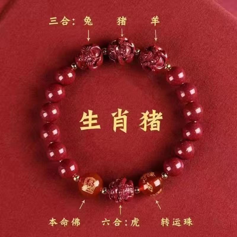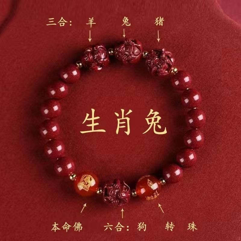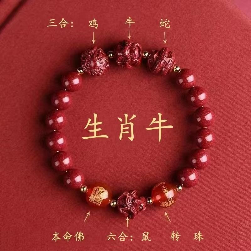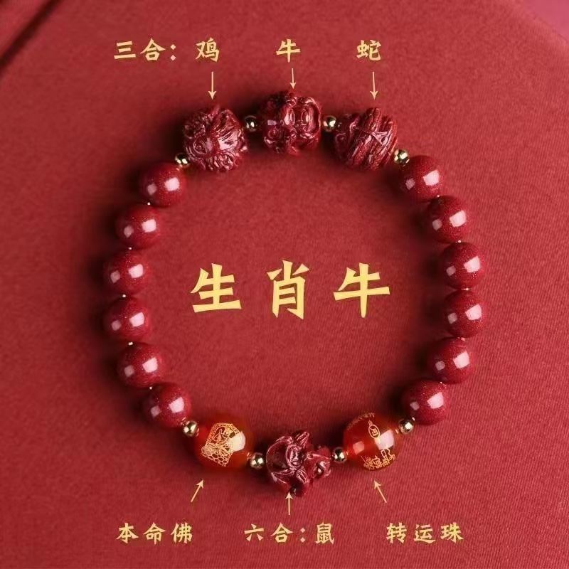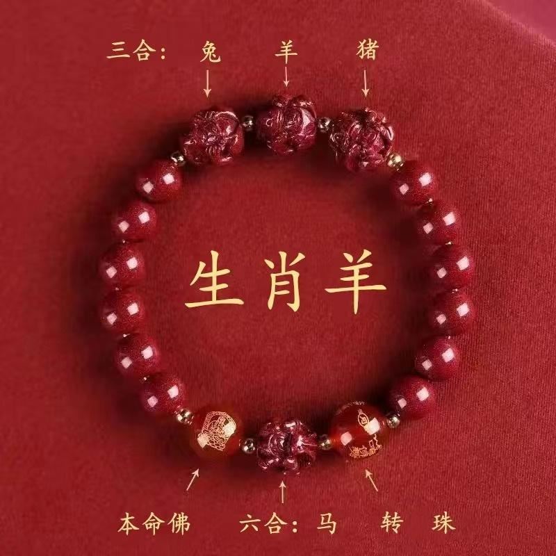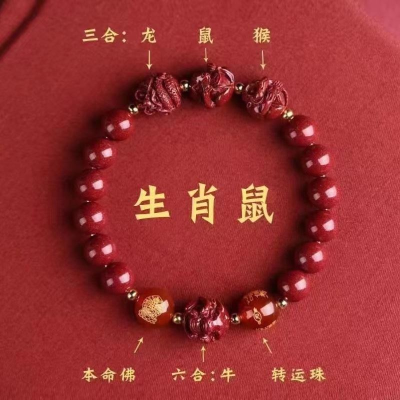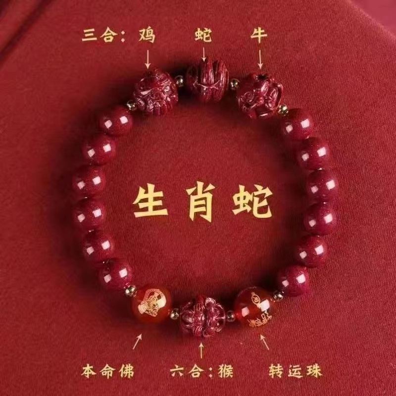 뱀의 해 Sanhe 붉은 모래 팔찌 Sanhe 붉은 모래 팔찌 Sanhe Liuhe 조디악 자연 남성과 여성의 팔찌 트렌디스토어 가기