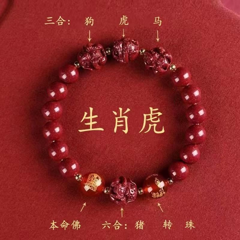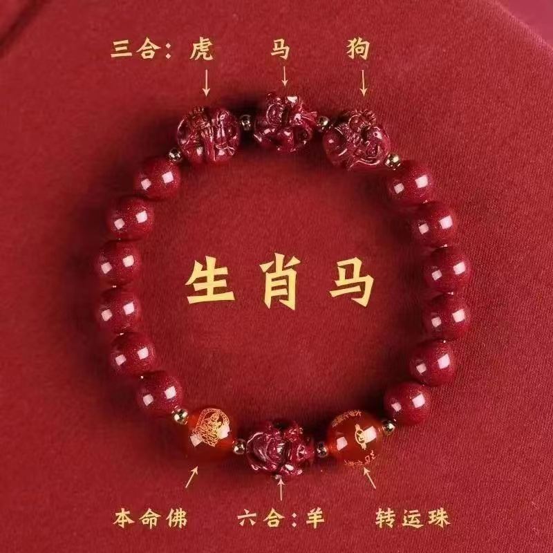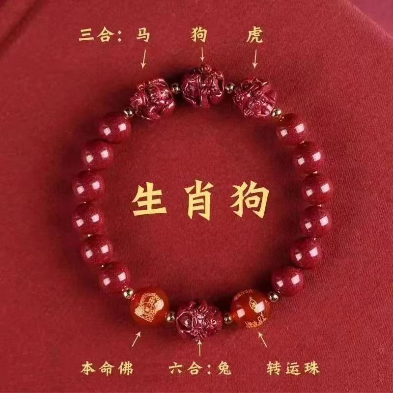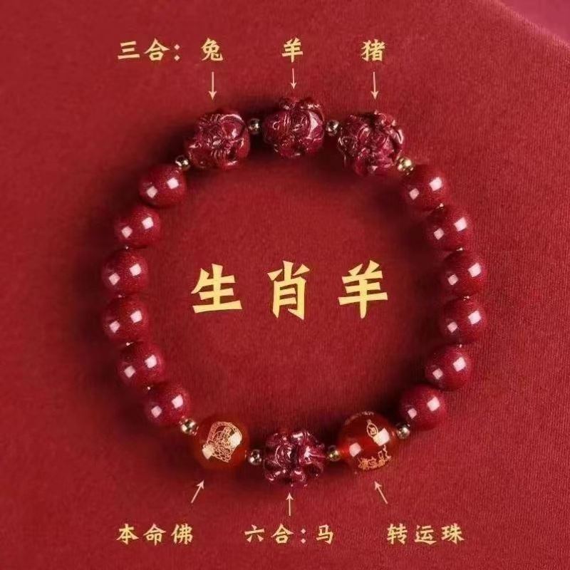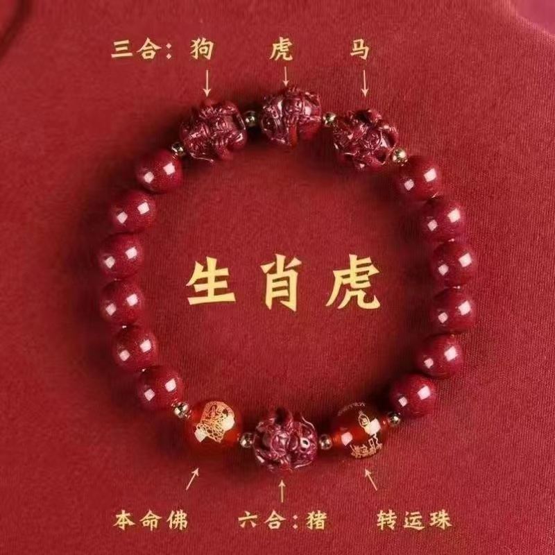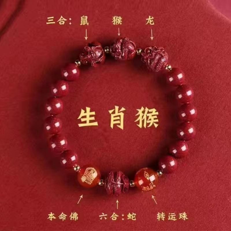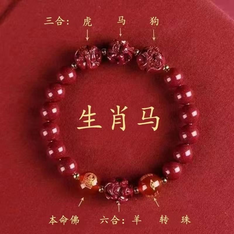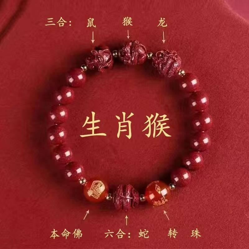 뱀의 해 Sanhe 붉은 모래 팔찌 Sanhe 붉은 모래 팔찌 Sanhe Liuhe 조디악 자연 남성과 여성의 팔찌 트렌디