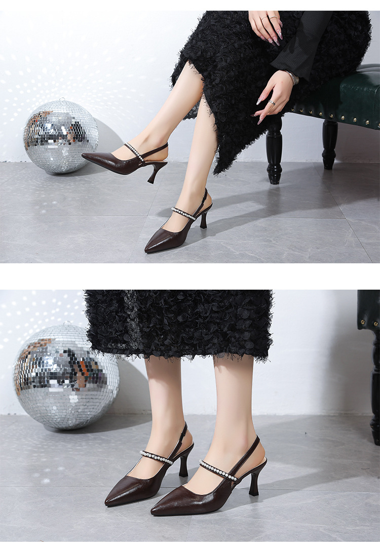 2026년 봄 신상 프렌치 스타일 우아한 뾰족코 얇은 굽 샌들 여성용 한국판 큐빅 장식 우아한 여성화스토어 가기