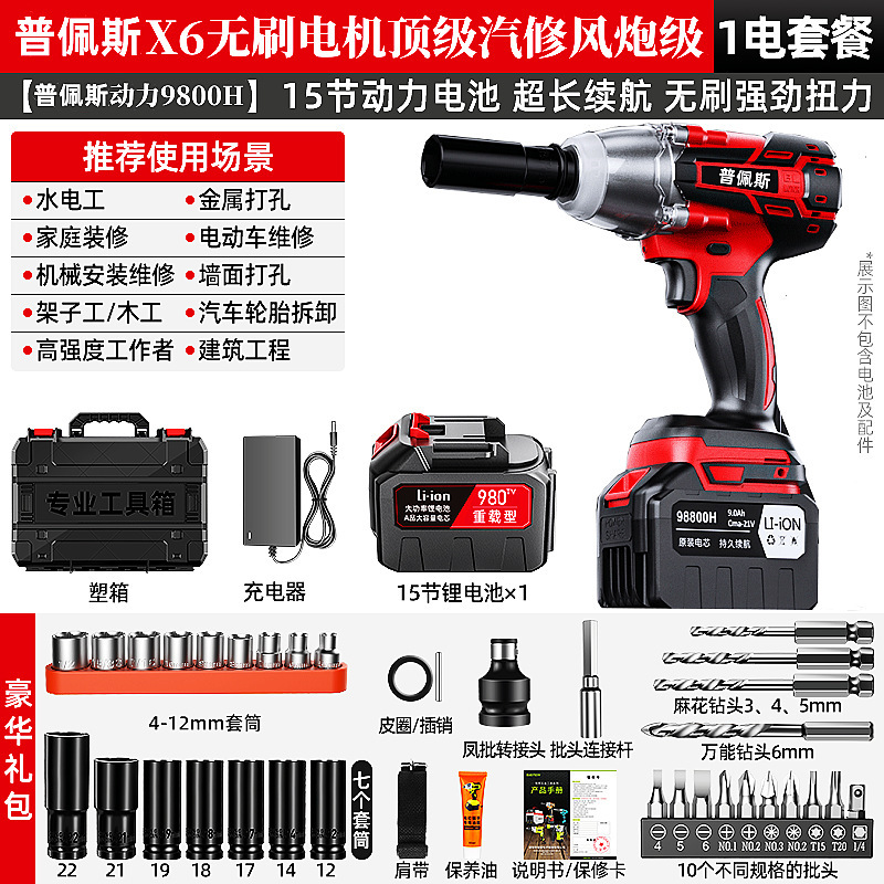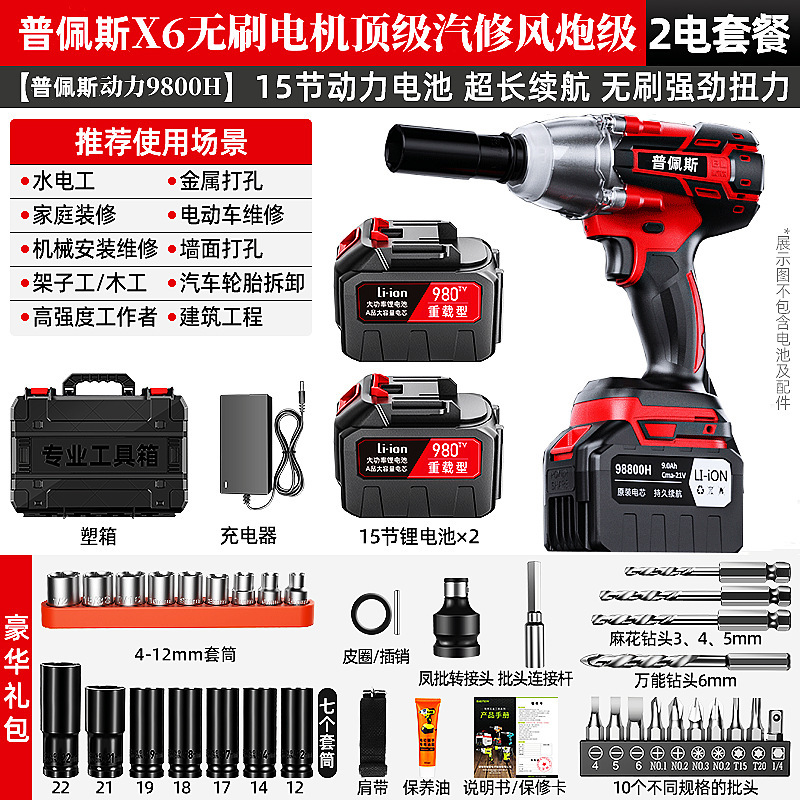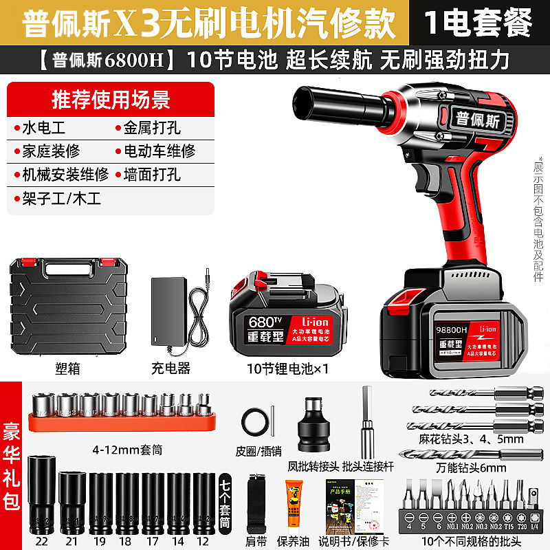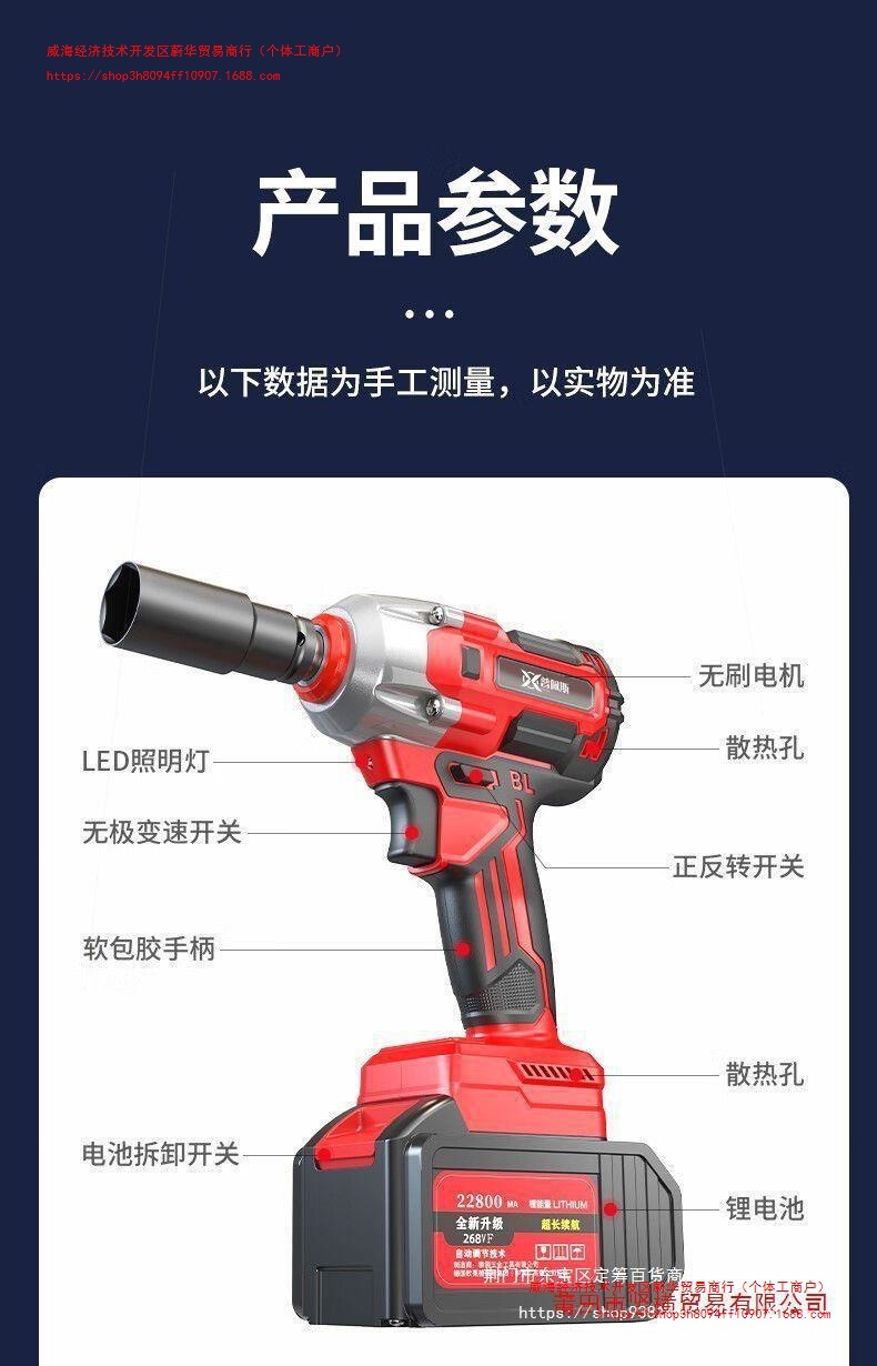 독일 브러시리스 전기 렌치 대형 토크 리튬 배터리 충격 렌치 자동차 수리 슬리브 휴대용 전기 윈드 건