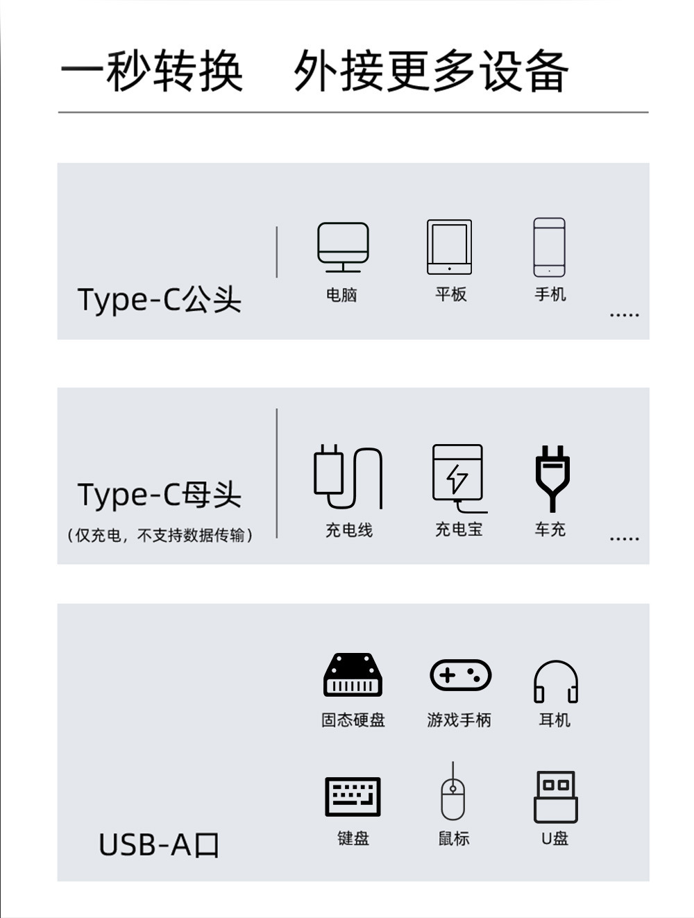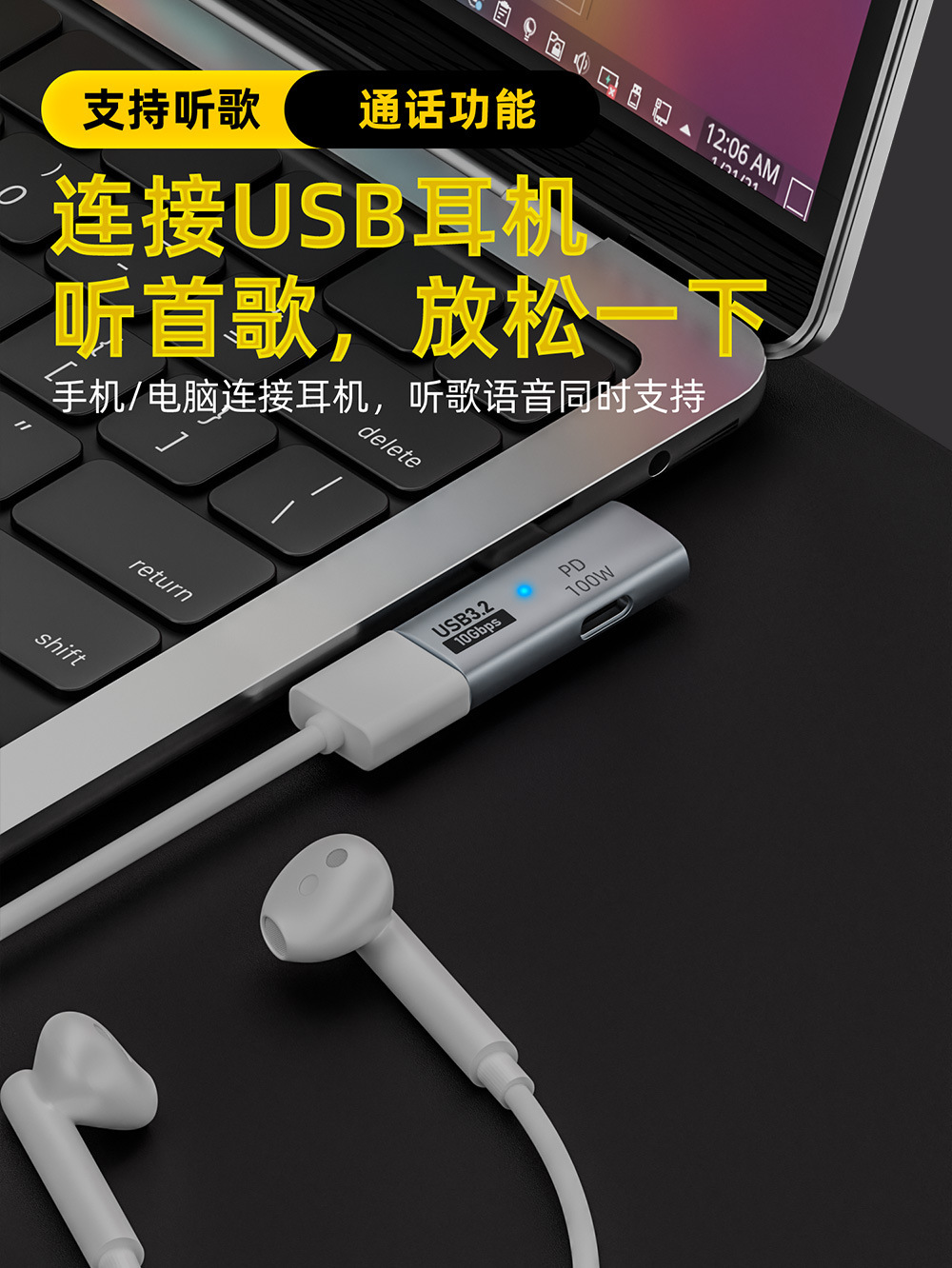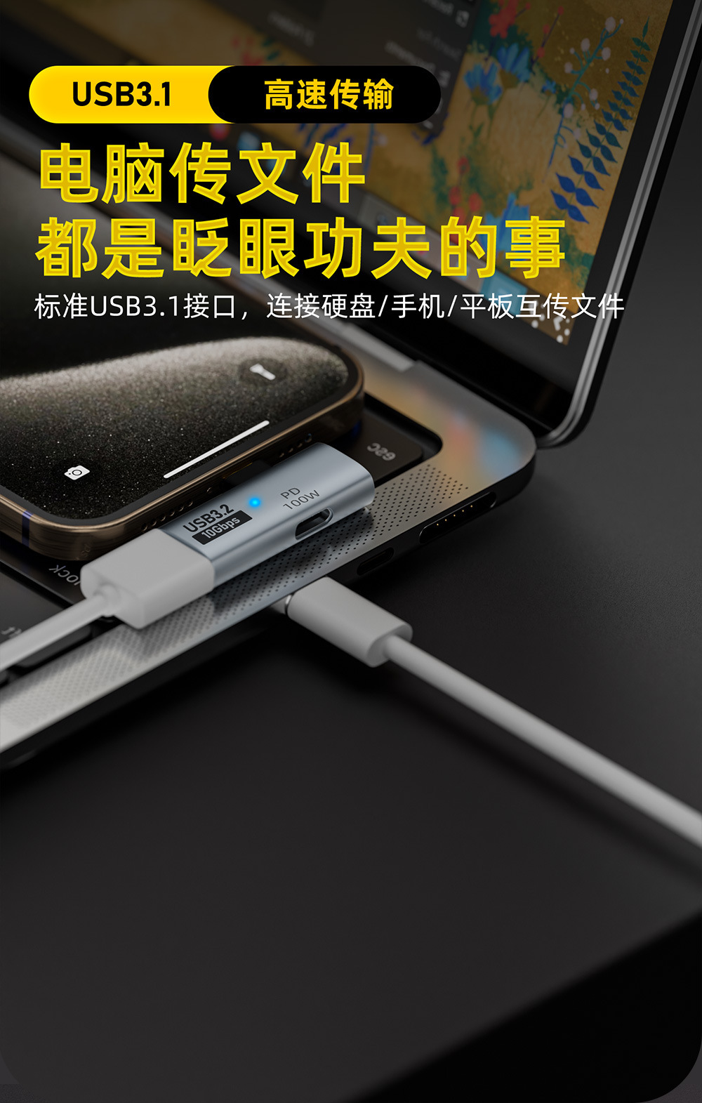 국경 간 2 대 1 다기능 어댑터 TYPE-C 동시에 U 디스크 PD100W 변환기를 사용합니다.스토어 가기