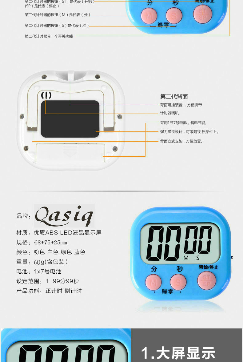 초등학생 전용 전자 타이머 주방 대용량 자기 규율 알림 간단한 숙제스토어 가기