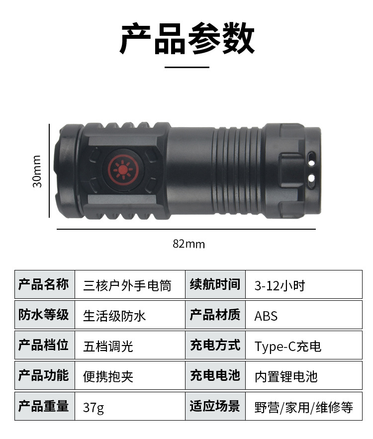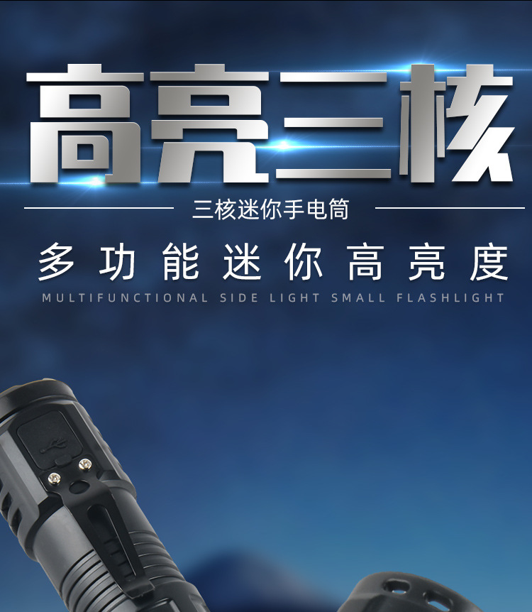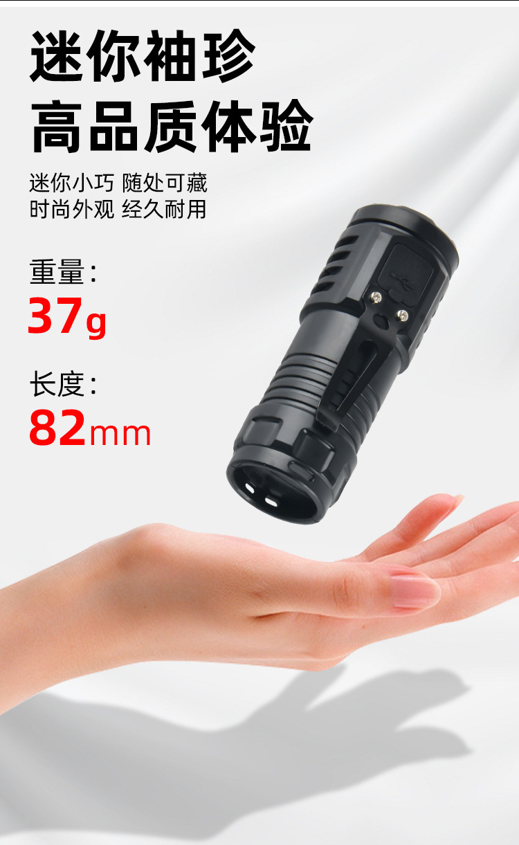 미니 손전등 타입-C 충전식 초강력 펜클립 소형 강력 조명 야외용 LED 충전식 휴대용스토어 가기