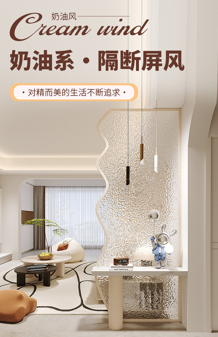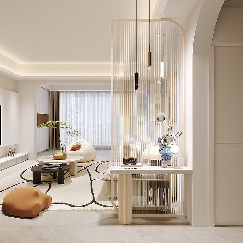 가벼운 럭셔리 파티션 크림 풍수 골판지 유리 음영 거실 입구 문 입구 싱크 창조적 인 단순