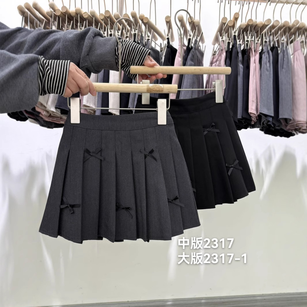 소녀의 주름 치마 2025 봄과 가을 새로운 도착 조커 리틀 블랙 스커트 어린이 보우 칼리지 스커트 안티 라이트스토어 가기