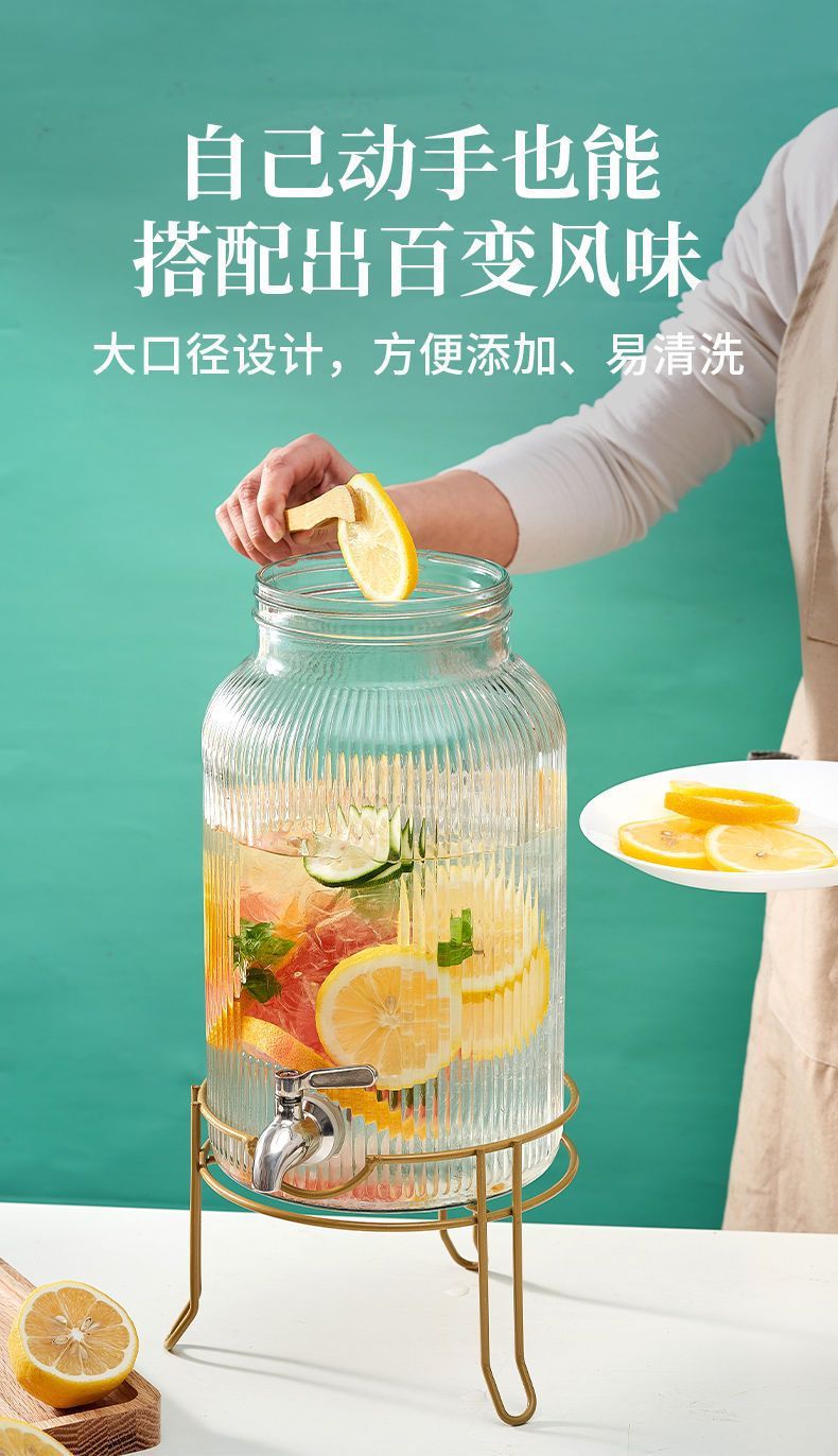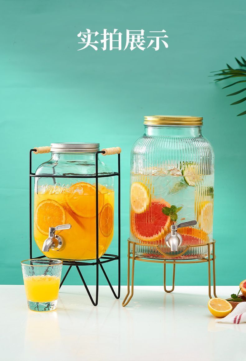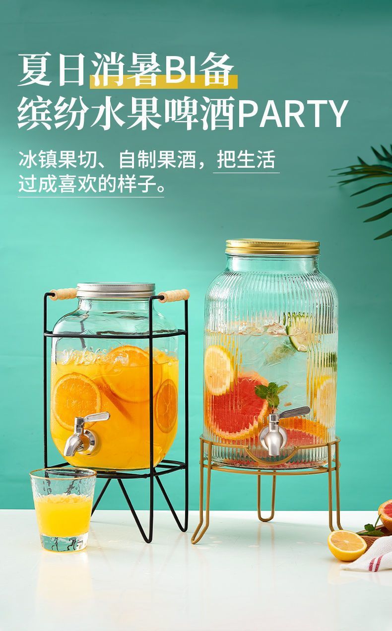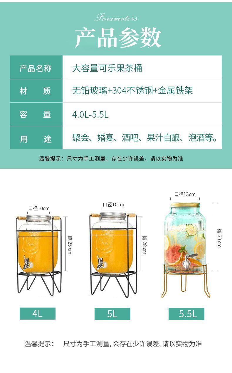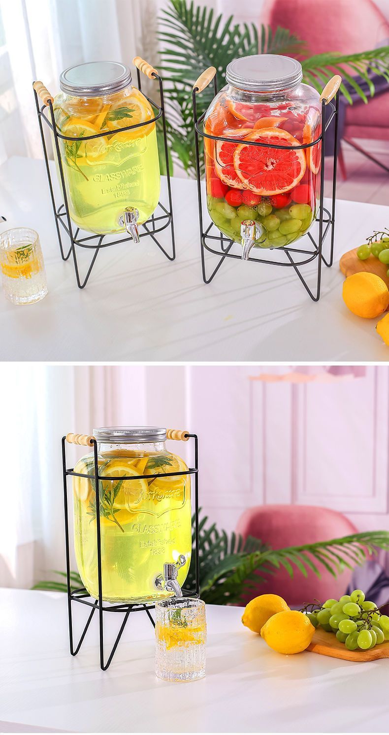 탭 아이스 드링크 양동이 달린 유리 음료 병 과일 차 양동이 큰 양동이 인터넷 연예인 Kke 버킷 과일 음료 양동이 피크닉 음료 양동이스토어 가기