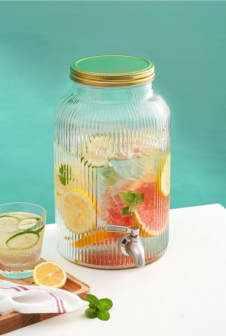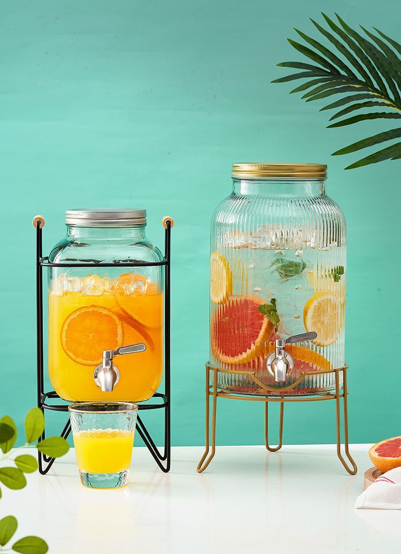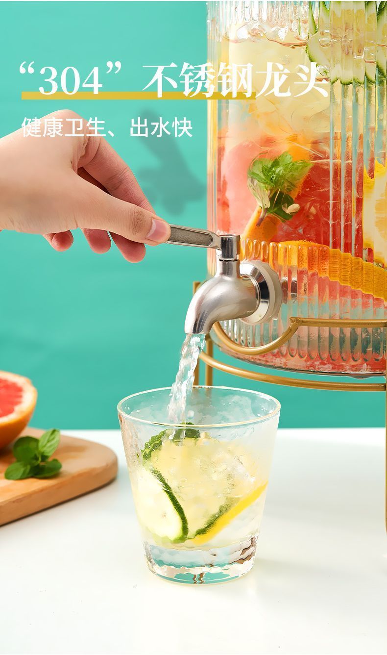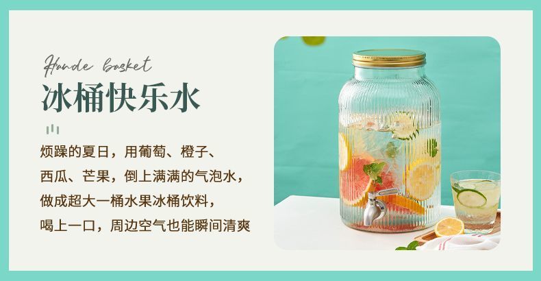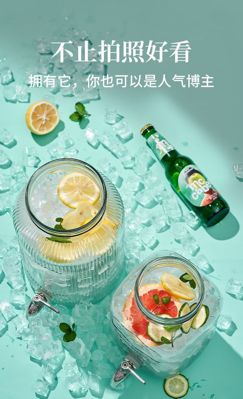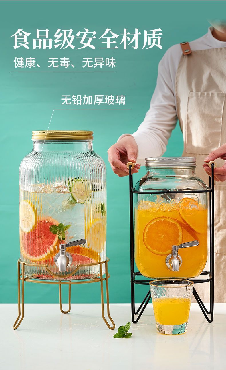 탭 아이스 드링크 양동이 달린 유리 음료 병 과일 차 양동이 큰 양동이 인터넷 연예인 Kke 버킷 과일 음료 양동이 피크닉 음료 양동이스토어 가기