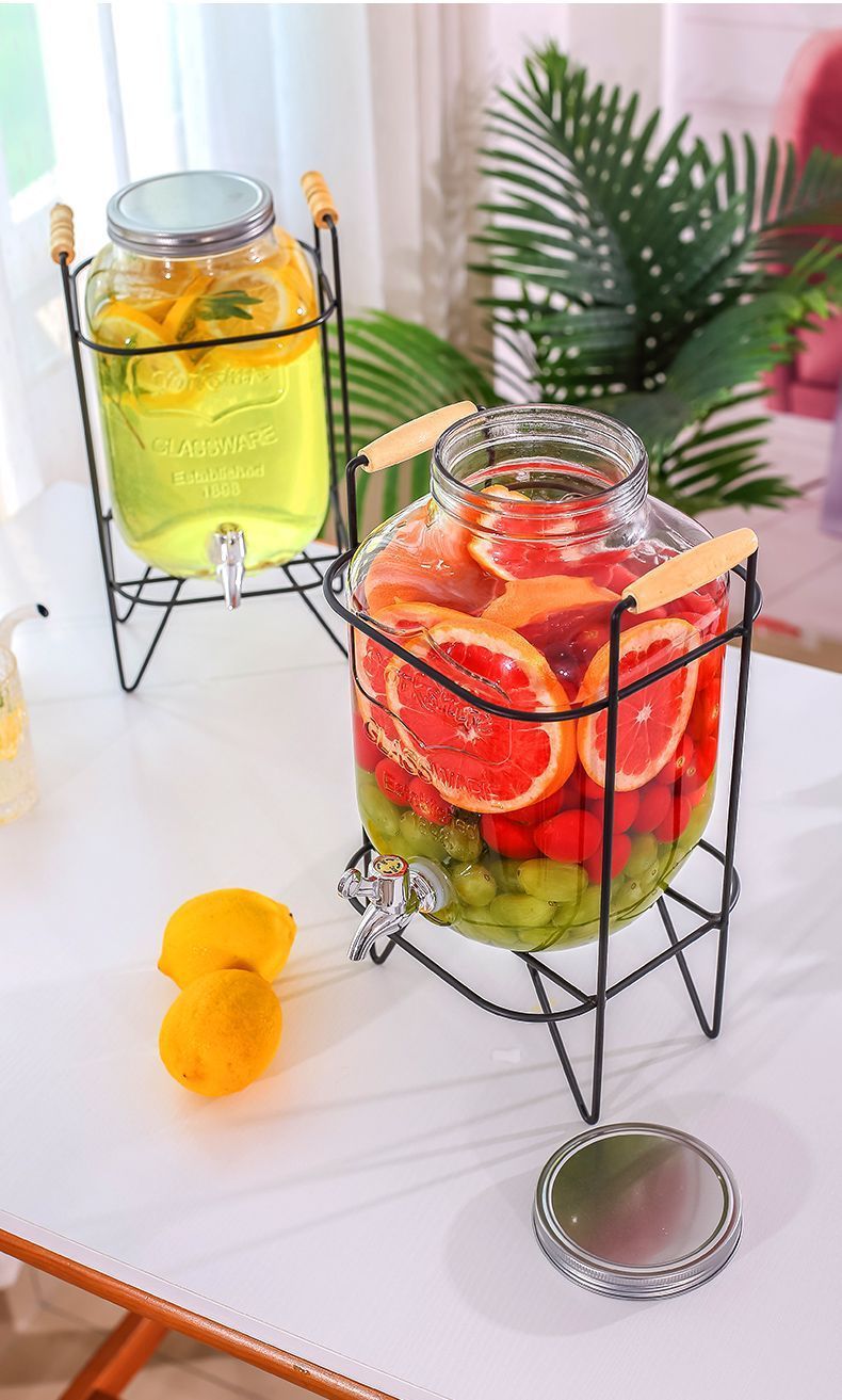 탭 아이스 드링크 양동이 달린 유리 음료 병 과일 차 양동이 큰 양동이 인터넷 연예인 Kke 버킷 과일 음료 양동이 피크닉 음료 양동이