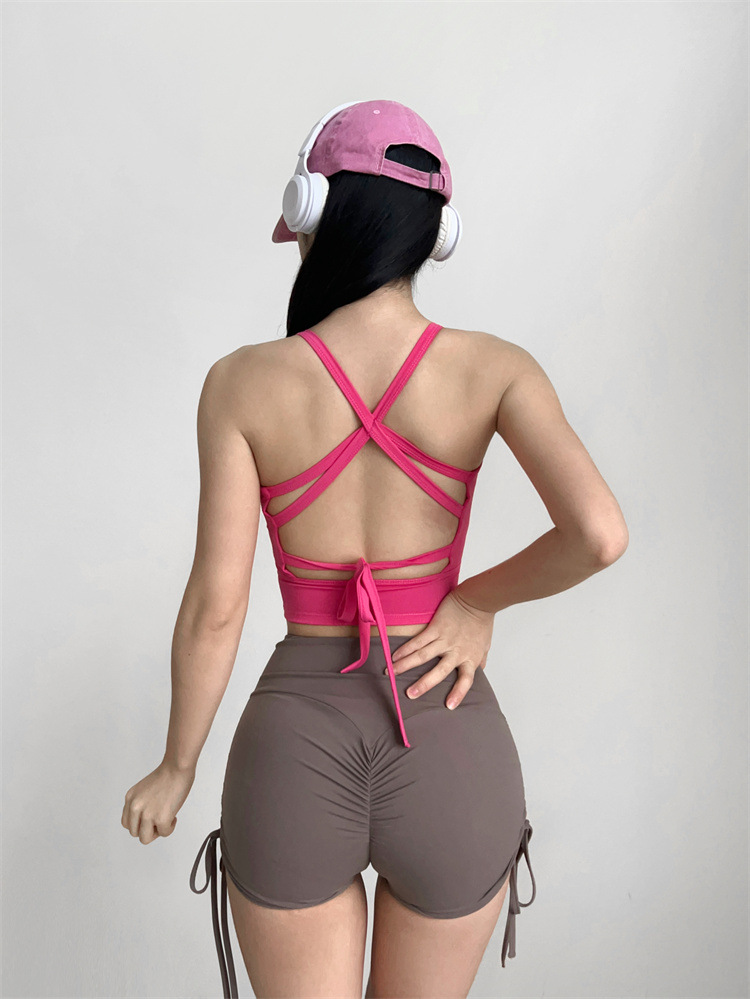 스트랩 요가 조끼 여성의 아름다운 백 크로스 필라테스 속옷 높은 탄성 빠른 드라이 스포츠 피트니스 브래지어 훈련 1429