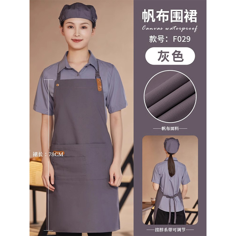 • F029 앞치마 그레이 + 다크그레이 조절식 베레모 + WWX-602 반팔 셔츠 그레이