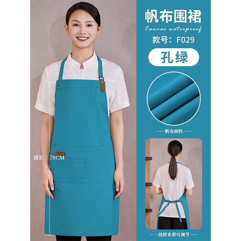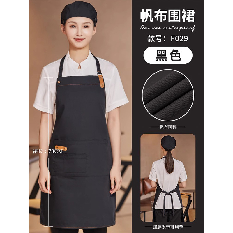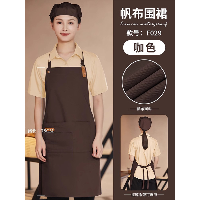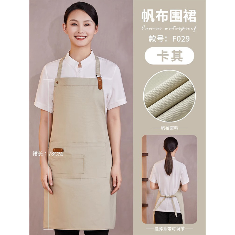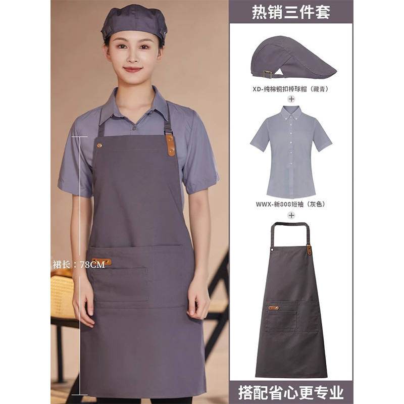 캔버스 앞치마 맞춤 로고 인쇄 식품 특수 우유 차 디저트 커피 숍 서양 식당 작업복 세트 여성