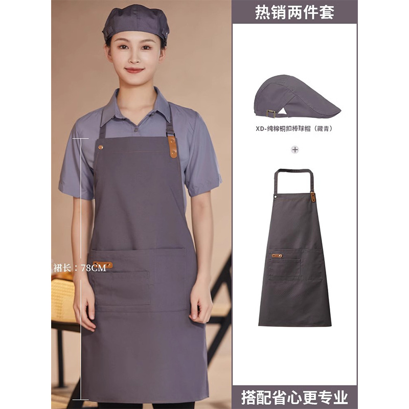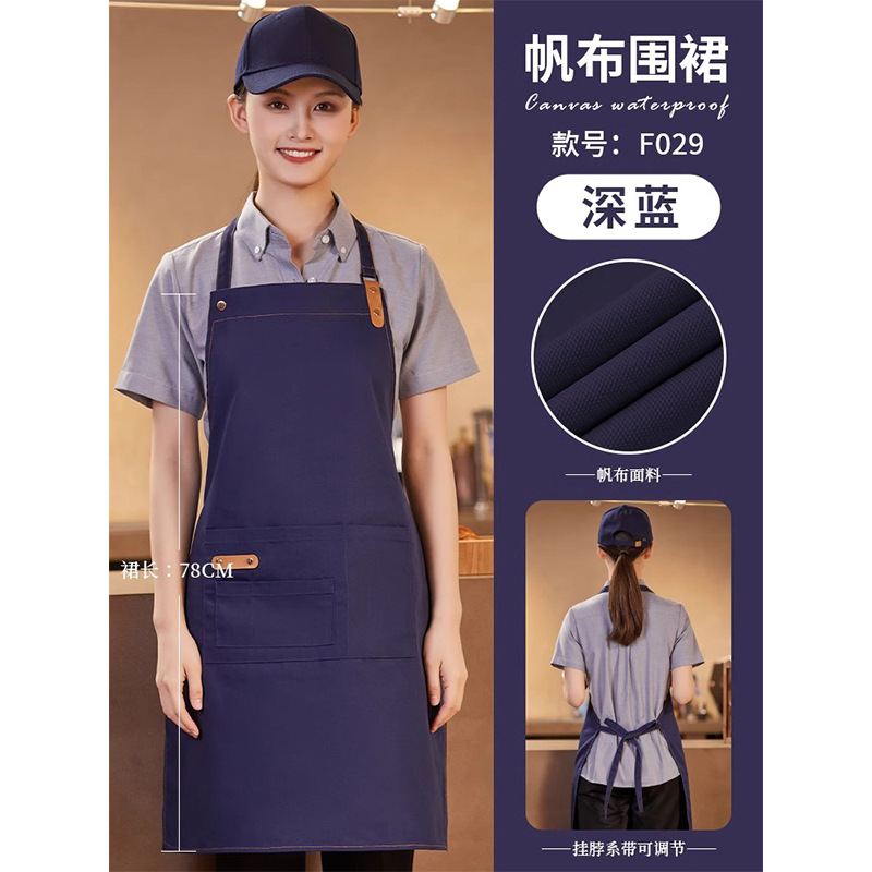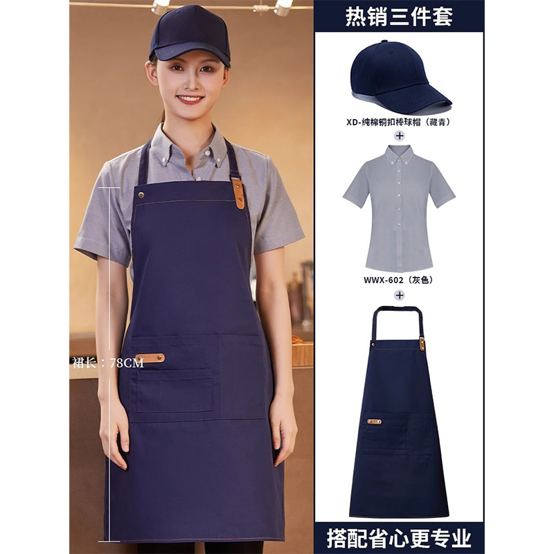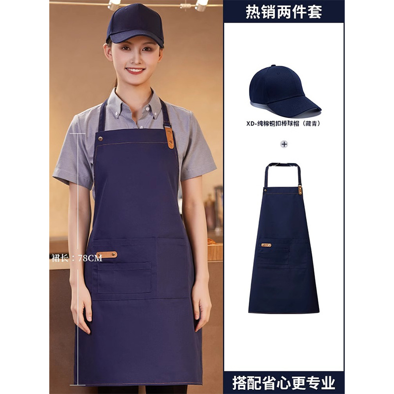 • F029 앞치마 진한 파란색 + Xinduo 6 조각 순면 구리 단추 모자 네이비 블루