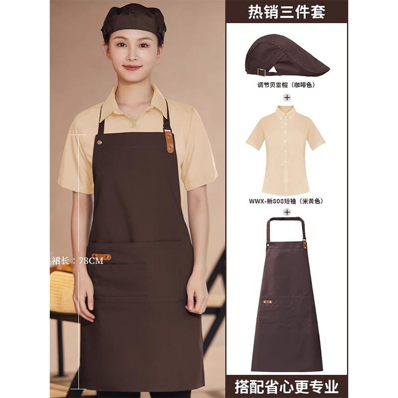 • F029 앞치마 커피컬러 + 커피컬러 조절베레 + WWX-new 808 반팔셔츠 베이지