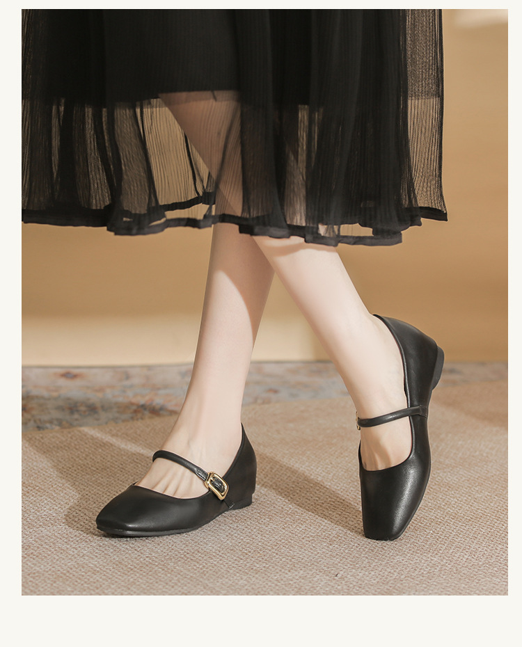 재고 2025 년 봄과 여름 예술적 All-match Texturous Lizhen 신발 높이 올리는 평면 캐주얼 소프트 가죽 소프트 밑창 싱글 레이어 신발스토어 가기