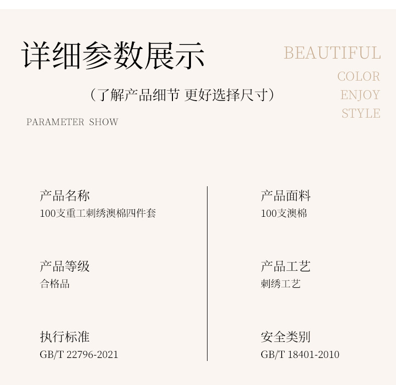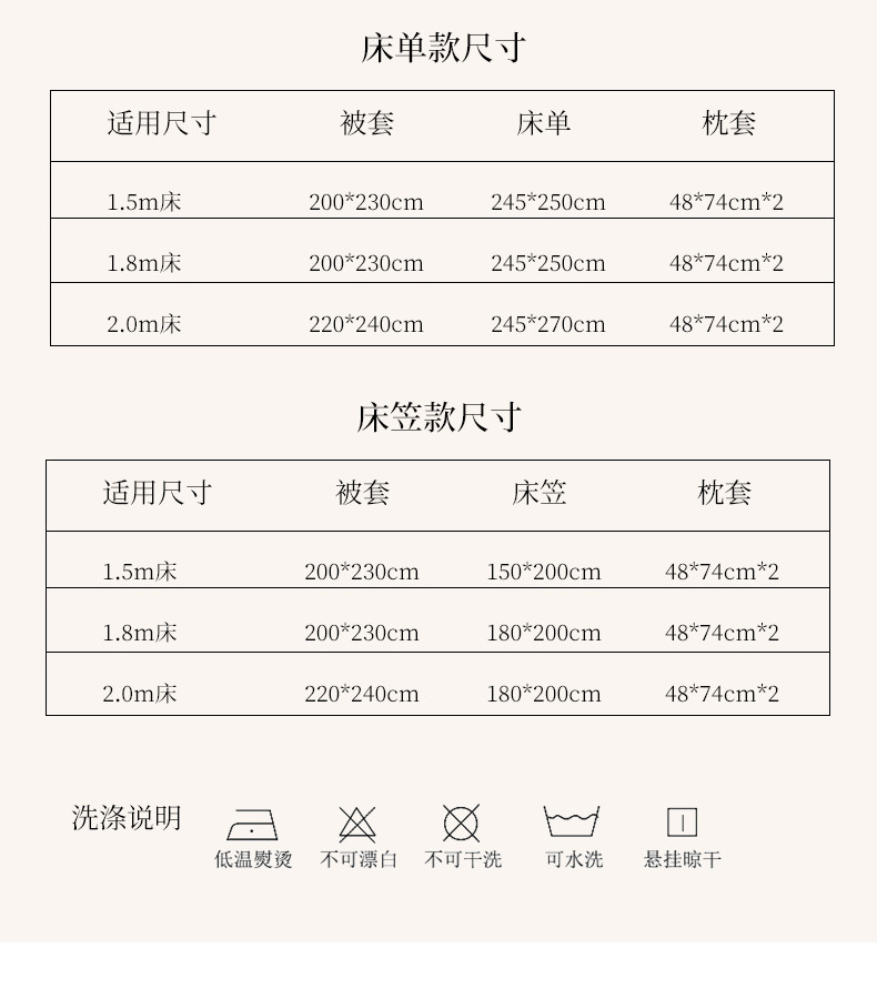 • 1.8m인용 침대에 적합하며 4피스 시트 세트는 200*230cm 이불심과 함께 사용하는 것이 좋습니다.