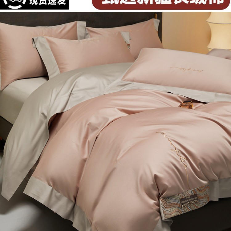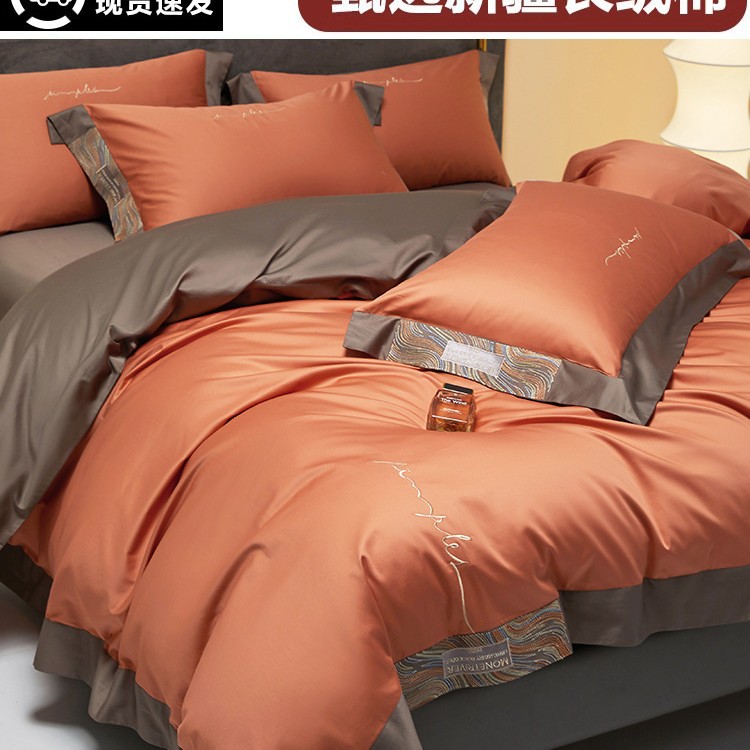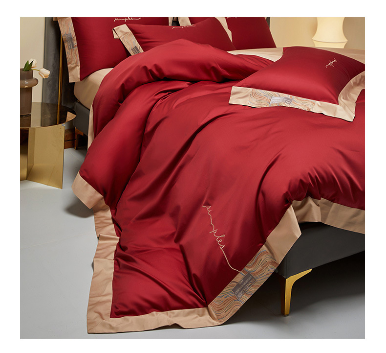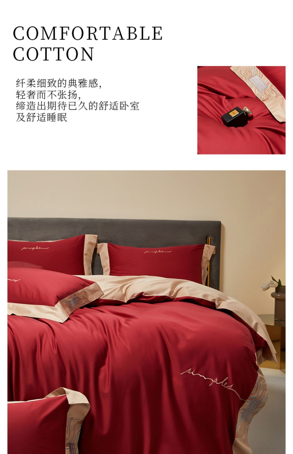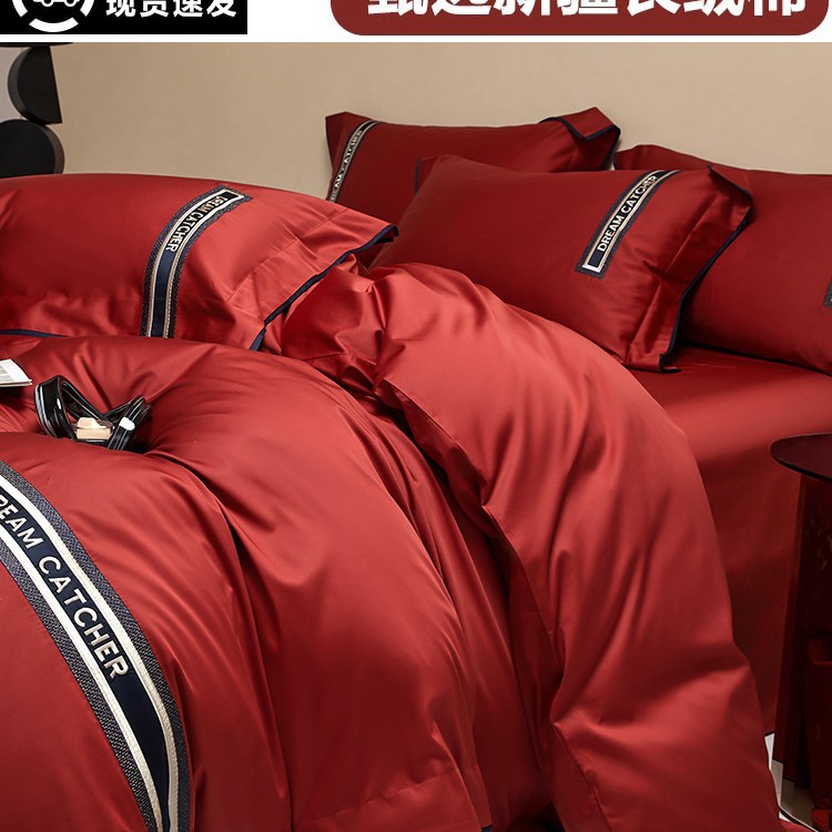 가벼운 럭셔리 하이 엔드 레드 4 피스 웨딩 침구 100S 코튼 웨딩 간단한 하이 엔드 웨딩