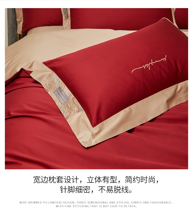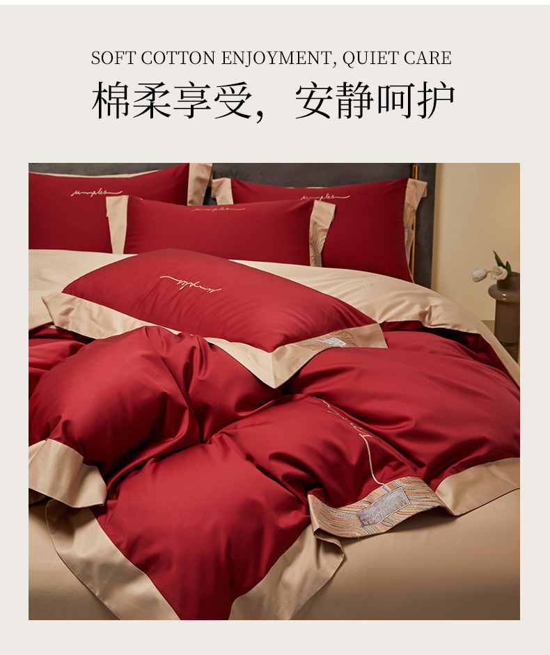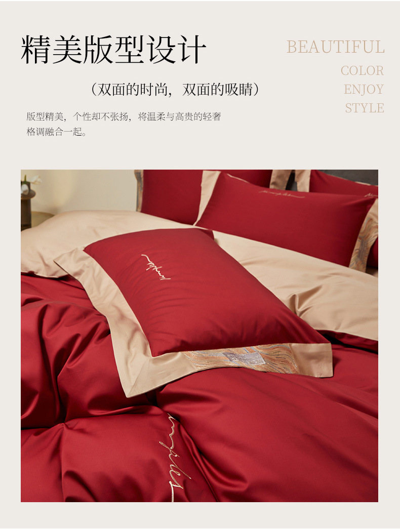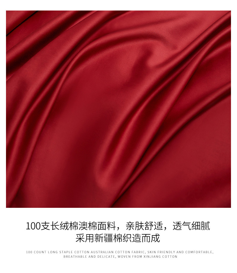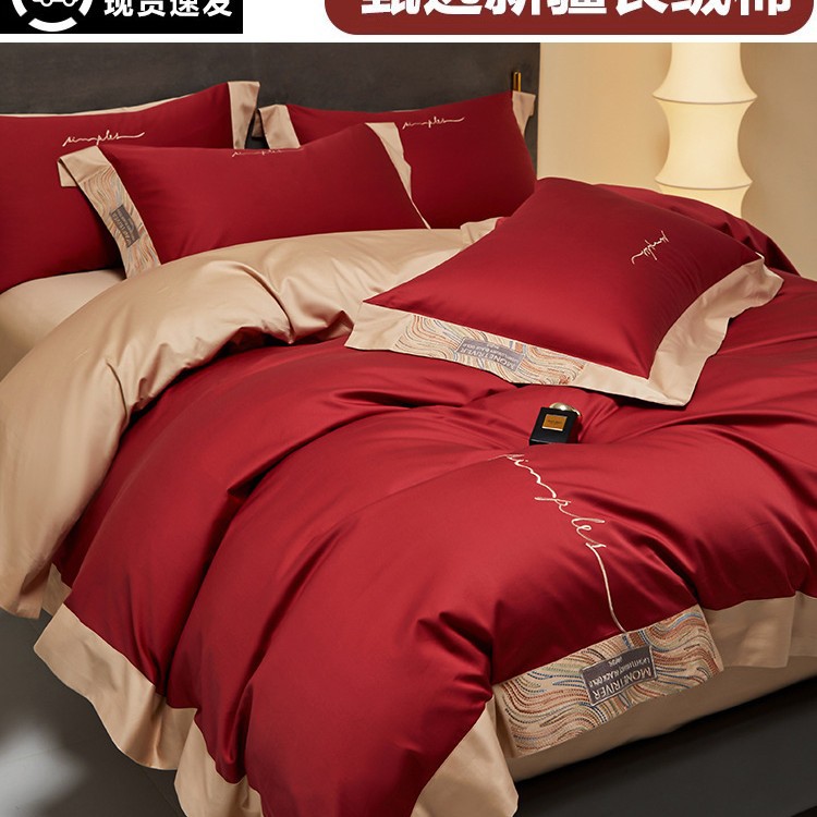 가벼운 럭셔리 하이 엔드 레드 4 피스 웨딩 침구 100S 코튼 웨딩 간단한 하이 엔드 웨딩스토어 가기