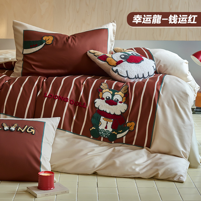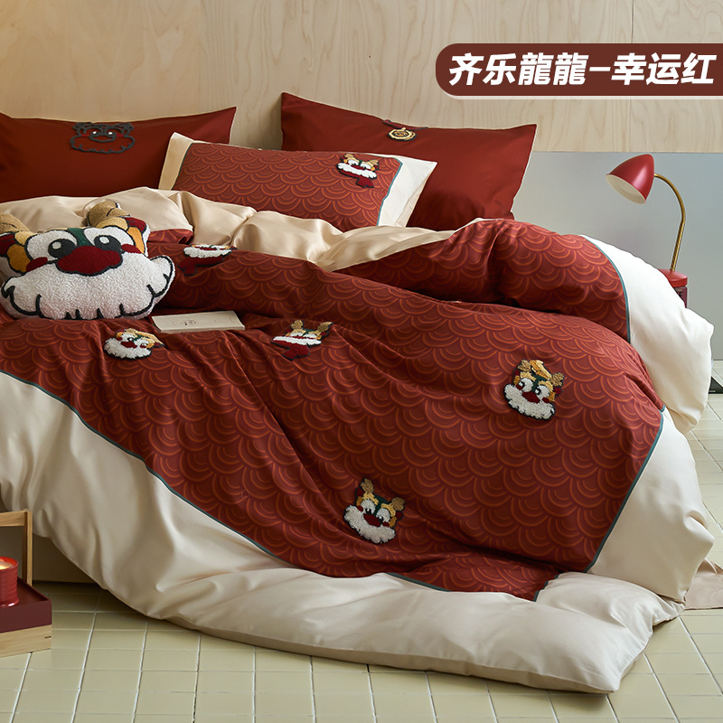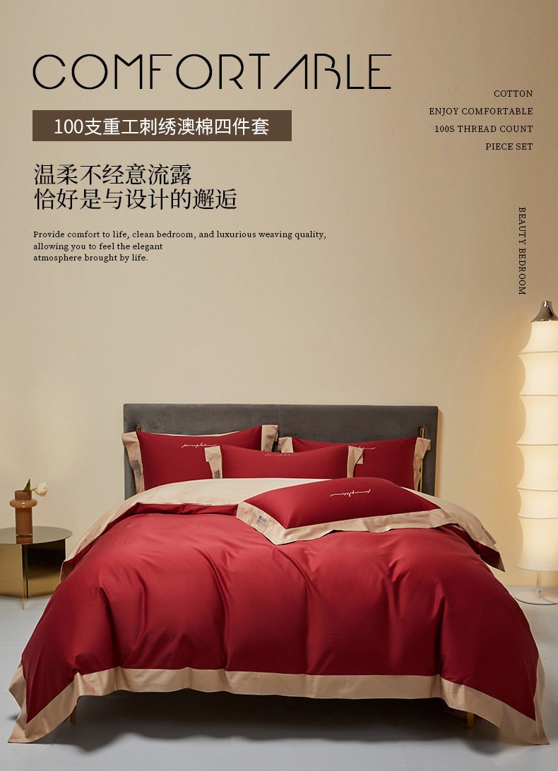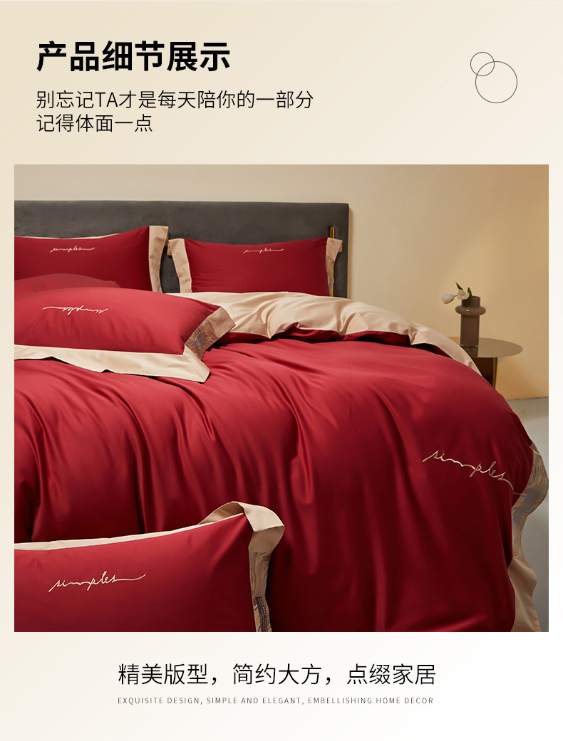 가벼운 럭셔리 하이 엔드 레드 4 피스 웨딩 침구 100S 코튼 웨딩 간단한 하이 엔드 웨딩스토어 가기