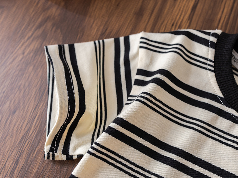 어린이 의류 소년 아기 여름 줄무늬 티셔츠 만화 멜빵 새 여름 어린이 반팔 세트