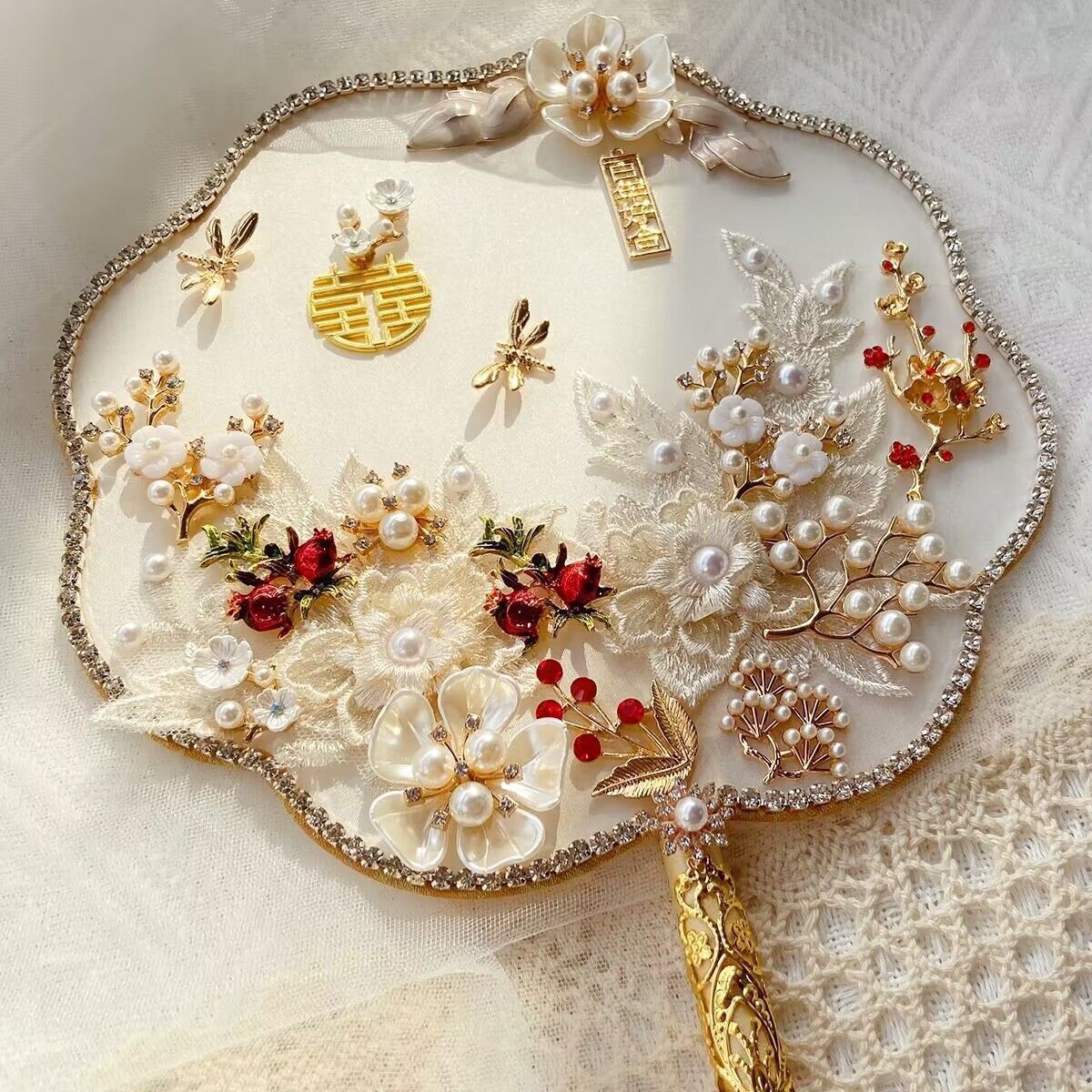웨딩 그룹 팬 신부 해피 팬 완료 레드 골동품 웨딩 팬 중국어 들고 꽃 축복받은 팬 웨딩 선물스토어 가기
