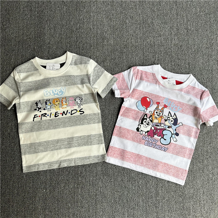 日单外贸卡通动漫条纹夏季童装短袖T恤衫