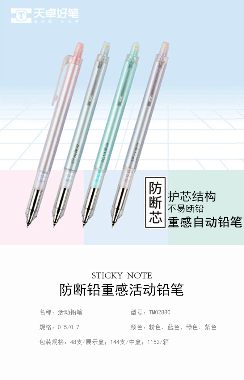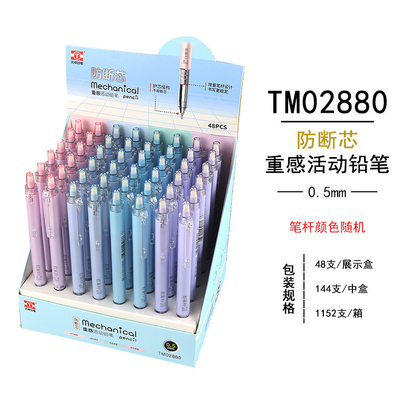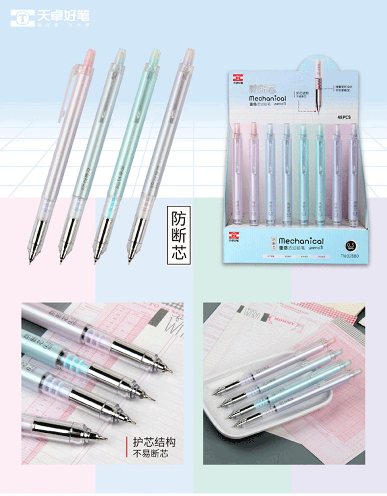 Tianzhuo 02880 중장비 감지 자동 연필 안티 브레이킹 코어 디자인 초등 학생 하드 브레이킹 0.5/0.7 액티브 연필스토어 가기