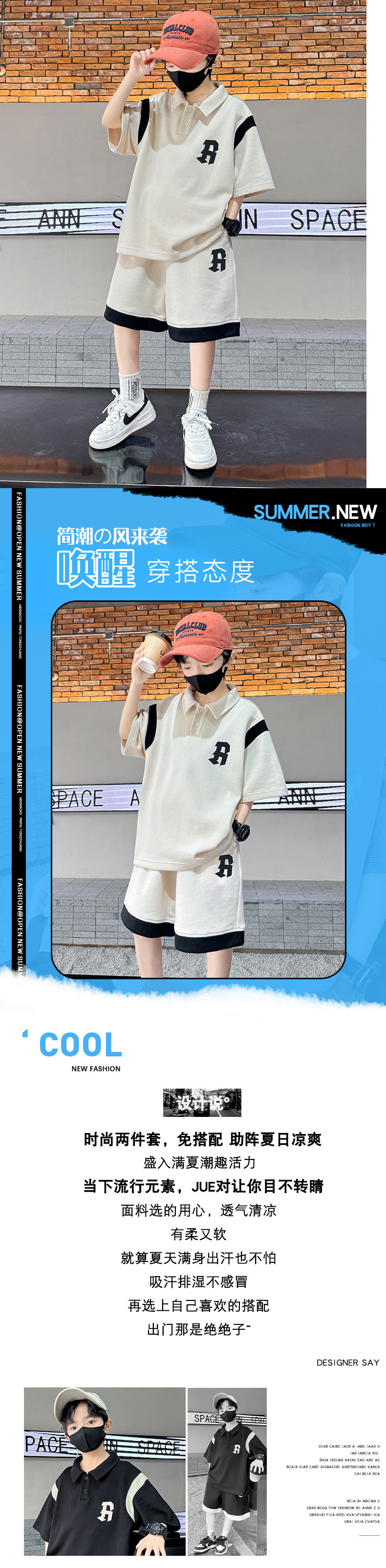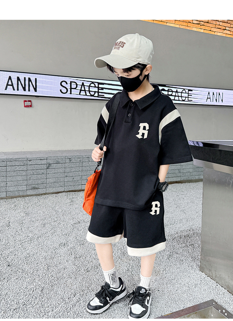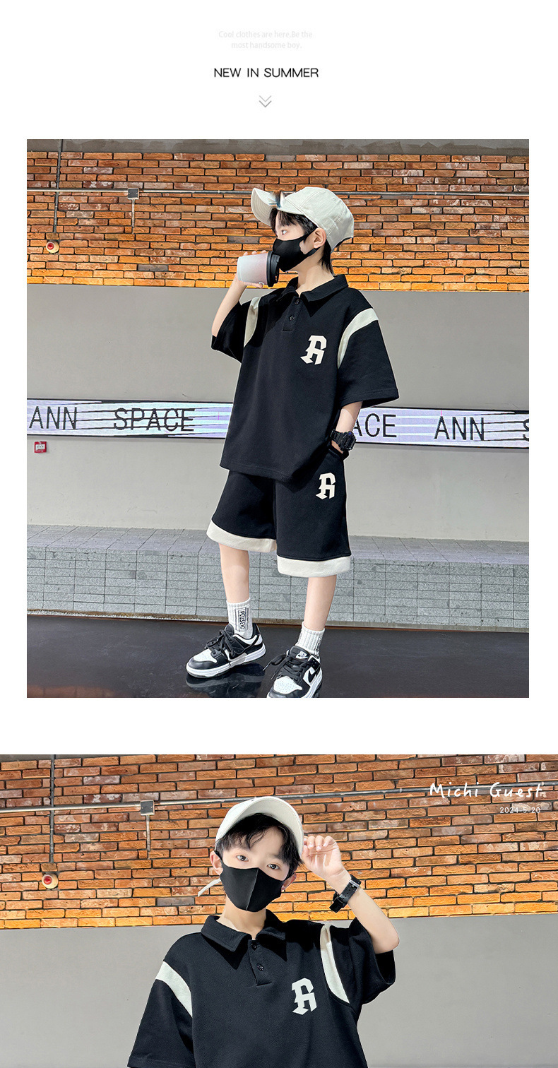 소년 여름 폴로 셔츠 세트 2025 년 여름 새로운 반팔 어린이 여름 스포츠 투피스 세트스토어 가기
