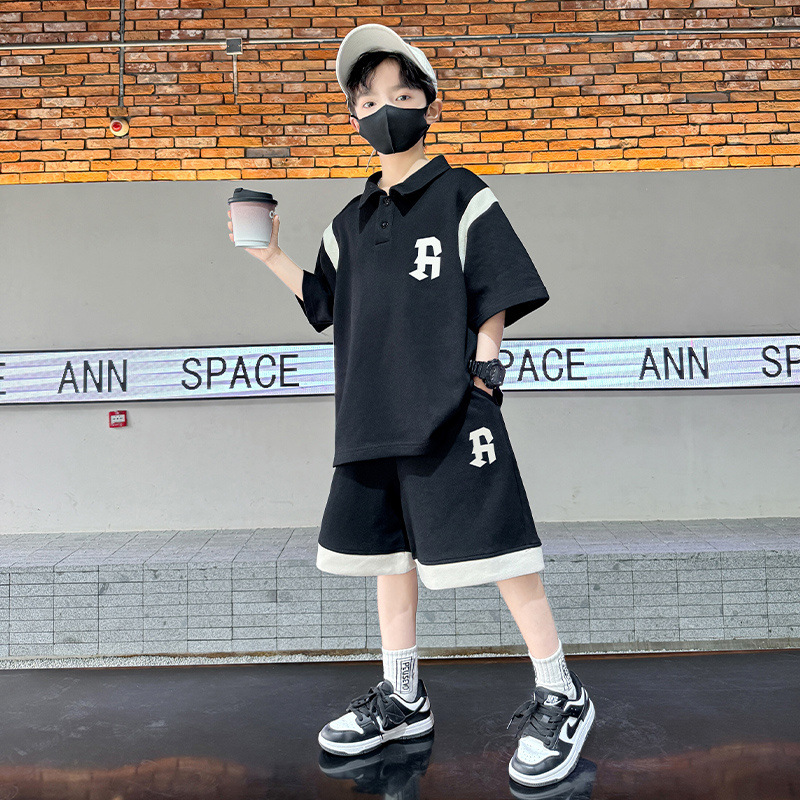 소년 여름 폴로 셔츠 세트 2025 년 여름 새로운 반팔 어린이 여름 스포츠 투피스 세트