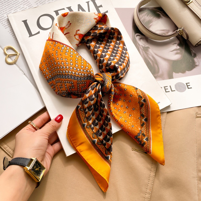 장루오난과 같은 스타일의 여성용 실크 스카프, 2026년 봄 여름 신상 패션 레트로 액세서리, 고급스러운 느낌의 넥 스카프, 작은 사각 스카프스토어 가기