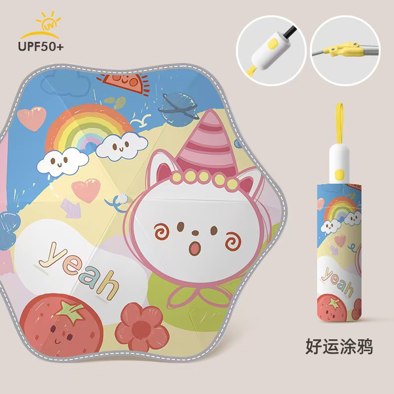 초등학생을위한 남학생과 여학생을위한 자동 반동 방지 어린이 우산 안전 접기 유치원 햇살과 비오는