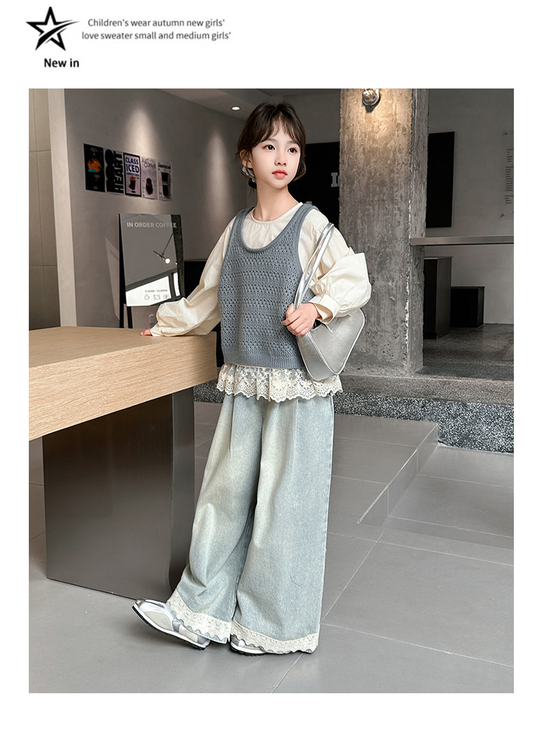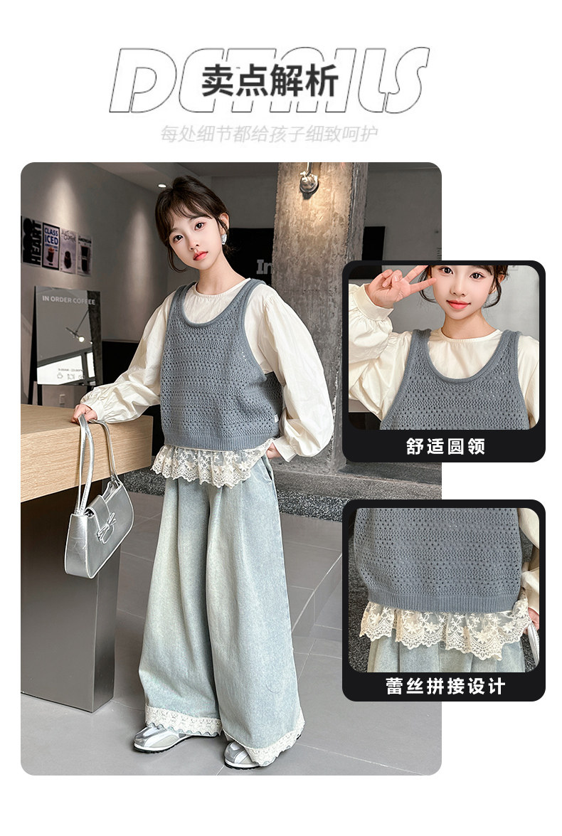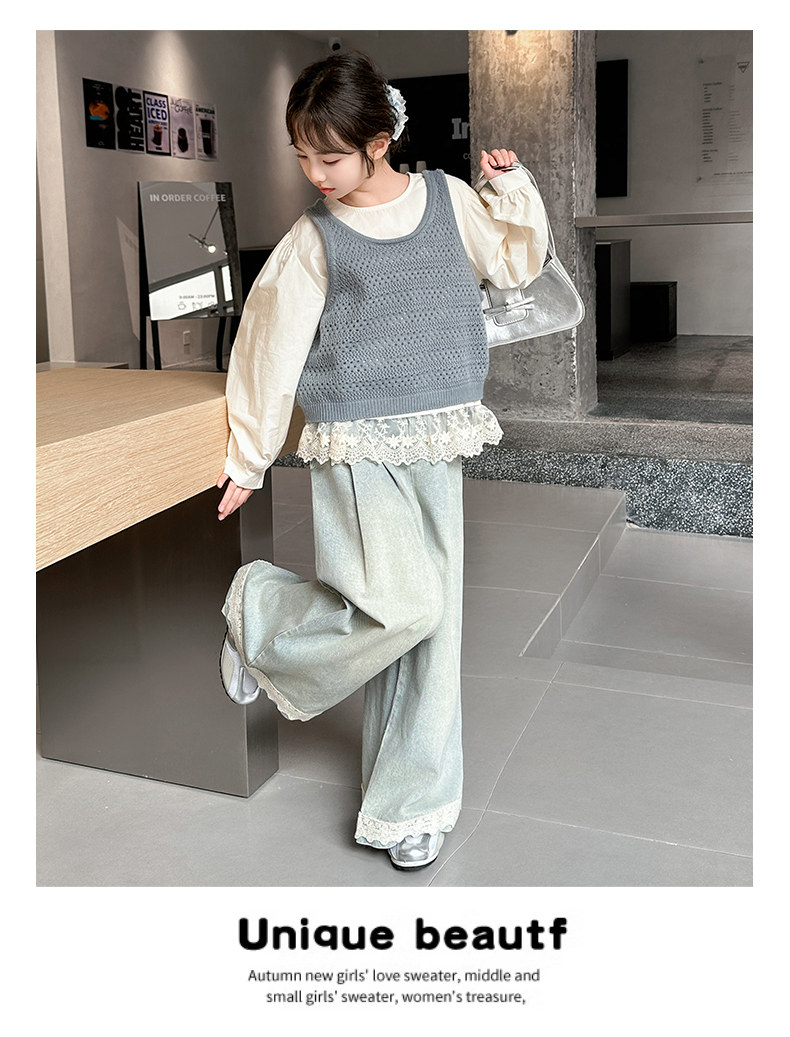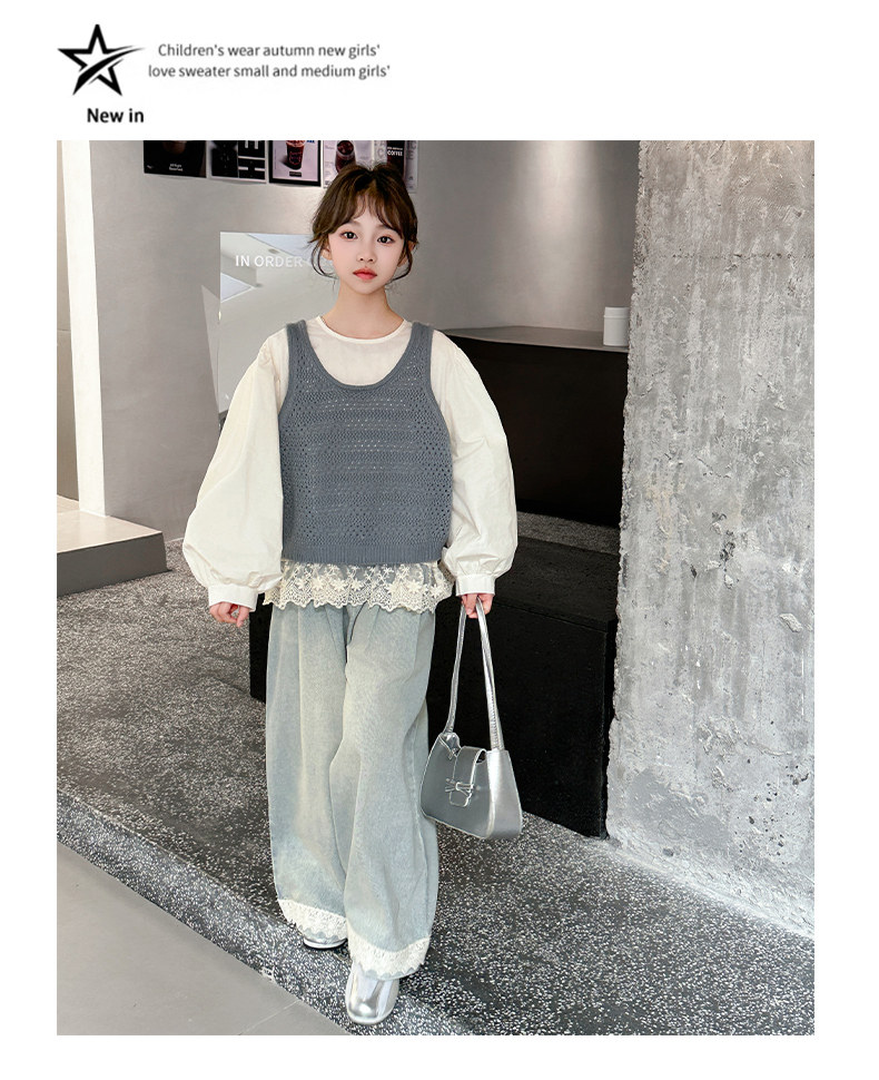 여아 스웨터 셔츠 세트 봄 가을 2026 신상 여아 대학생 스타일 셔츠 아동 캐주얼 봄옷 트렌드