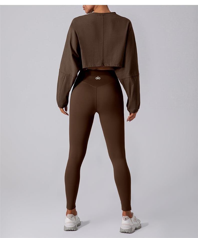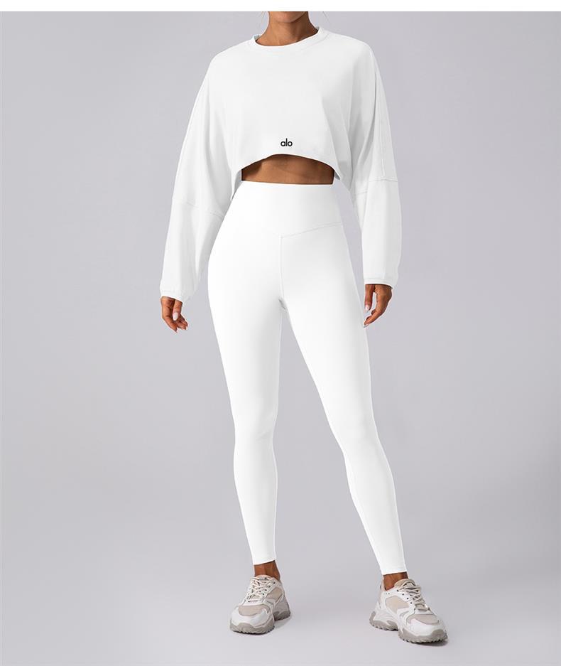 북미 al 요가 운동복 배꼽 노출 라운드 넥 여성 짧은 스포츠 피트니스 티셔츠 드롭 어깨 소매 느슨한 긴팔 요가 착용