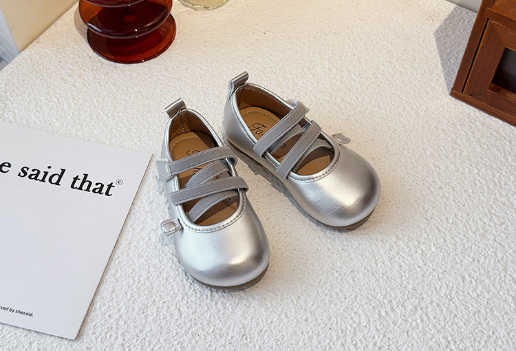 여자 작은 가죽 신발 2025 봄 새로운 어린이 실버 공주 신발 소녀 캐주얼 부드러운 밑창 한국 스타일 올 매치 싱글 레이어 신발스토어 가기