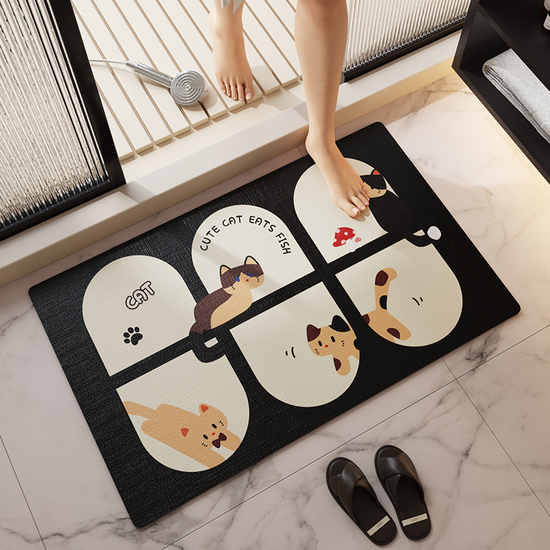 국경 간단한 욕실 바닥 매트 변기 진흙 흡수성 빠른 건조 미끄럼 방지 발 매트 화장실 문 미끄럼 방지 카펫스토어 가기