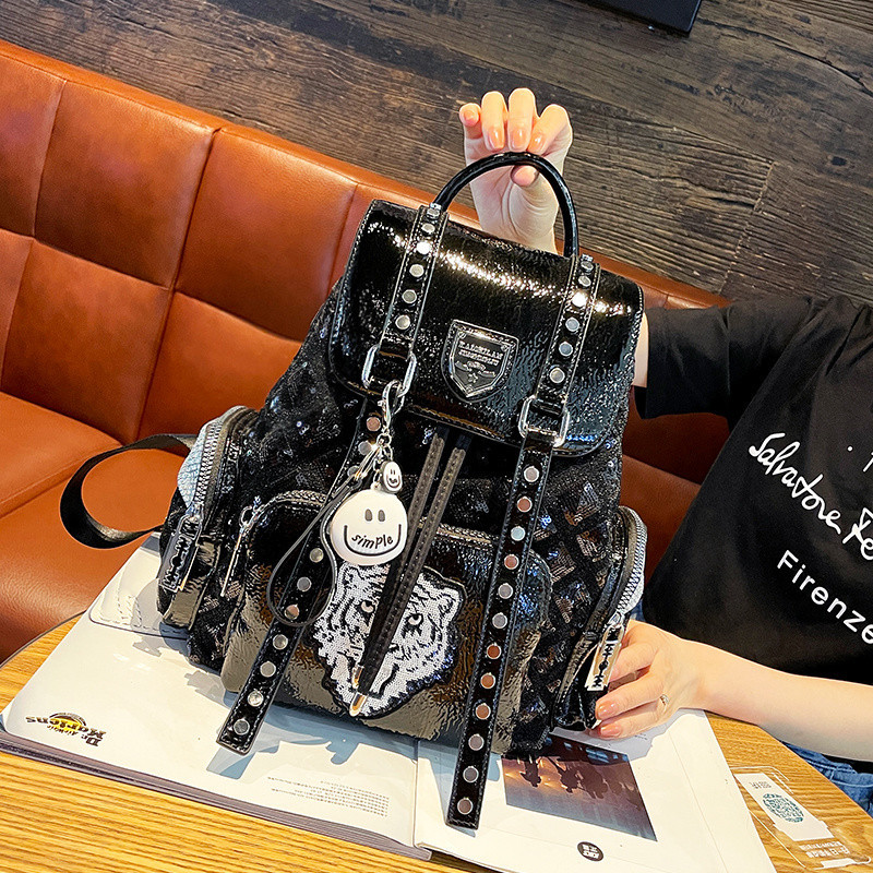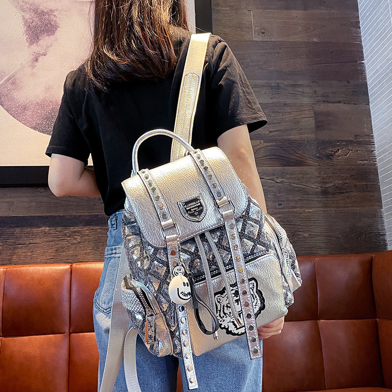 Hd Backpack 여성의 2024 새로운 유행 유행 대용량 여성용 가방 백팩 모든 경기 복고풍 속편 도난 방지 플립 커버스토어 가기