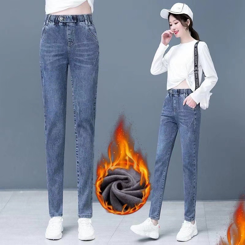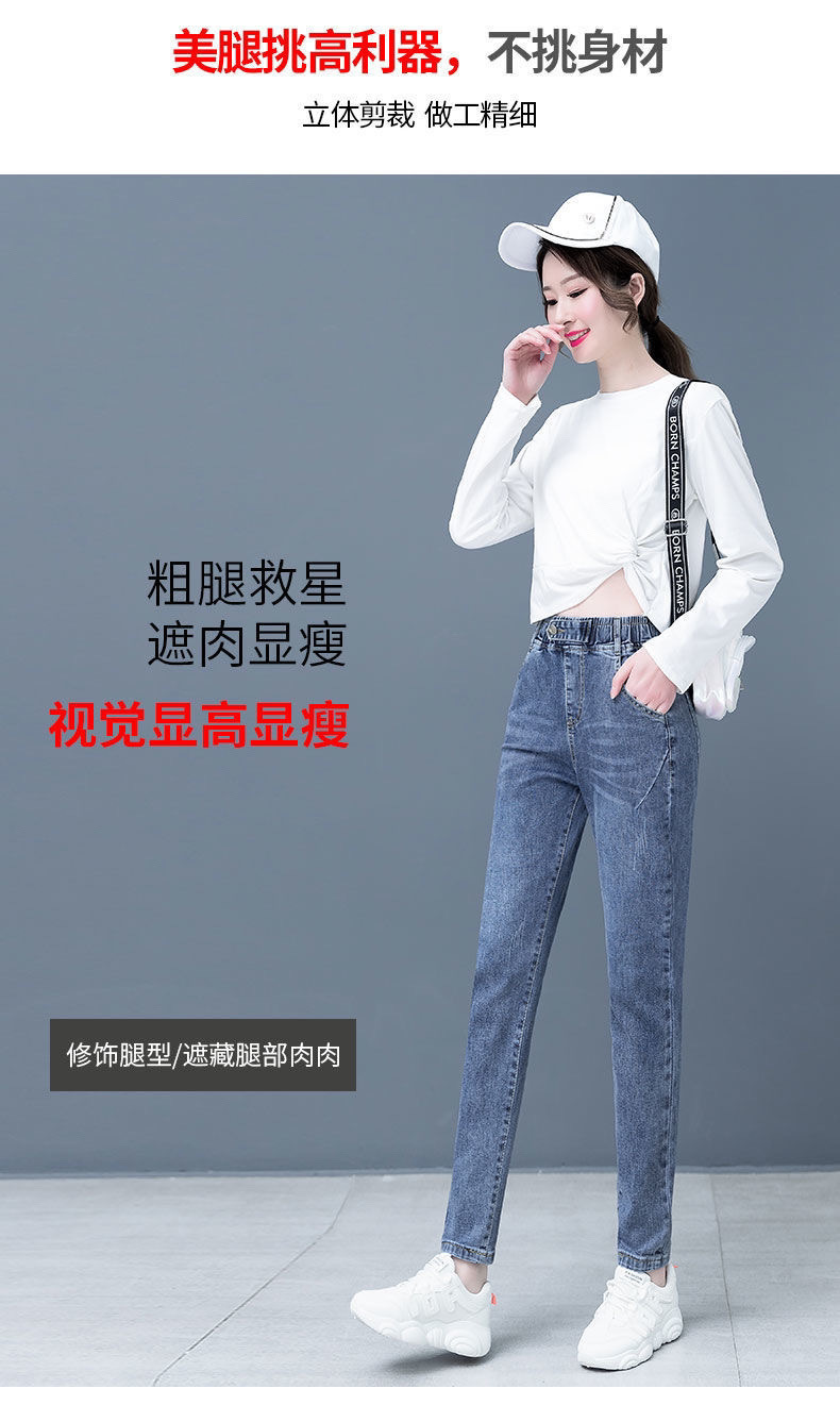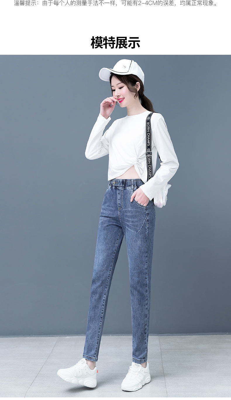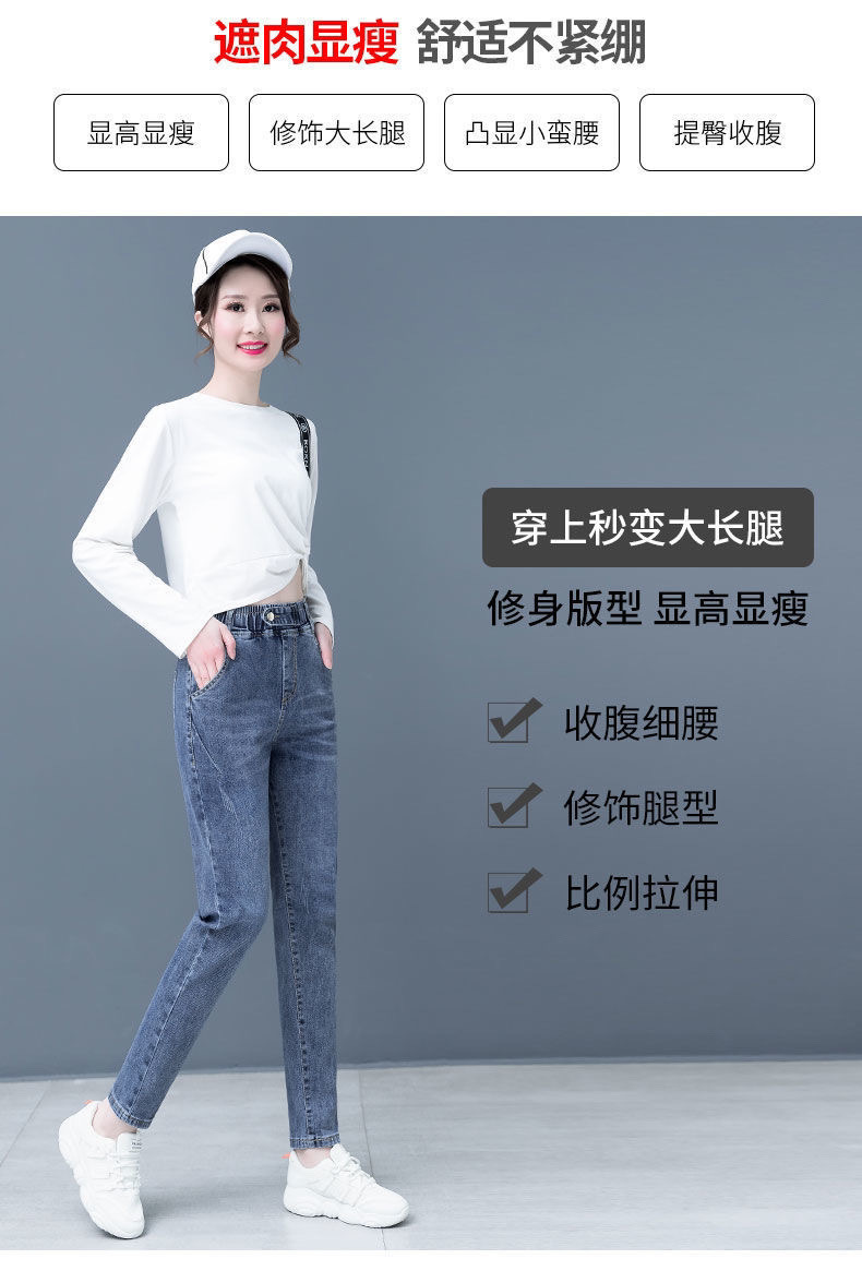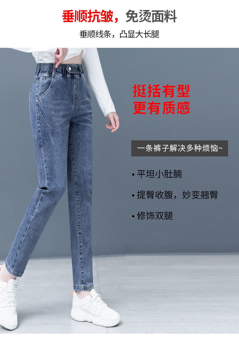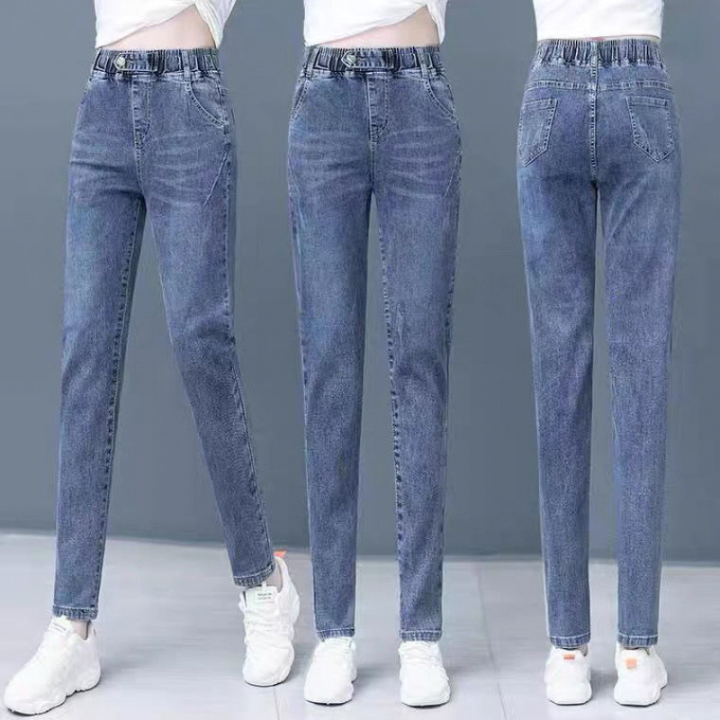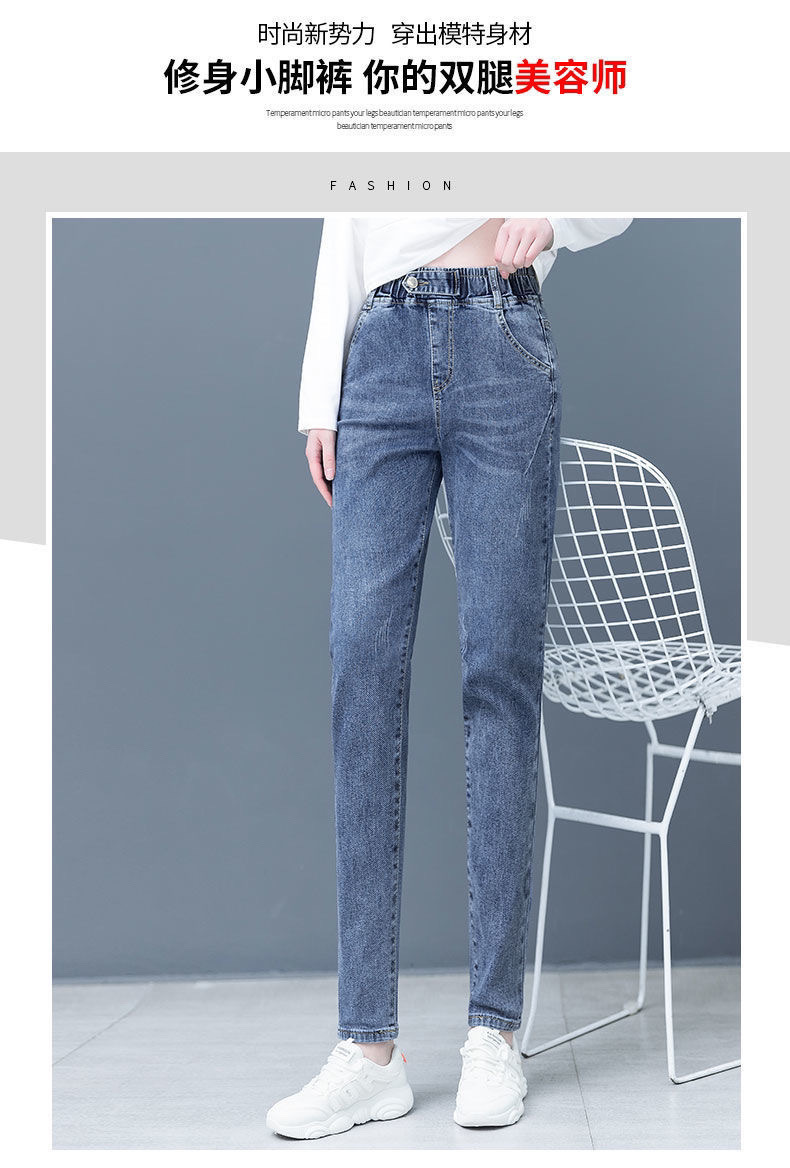 Elassible Waist Jeans 여성용 2024 새로운 높은 허리 하렘 바지 올 매치 슬림 핏 슬림 스트레이트 연필 다리 바지스토어 가기