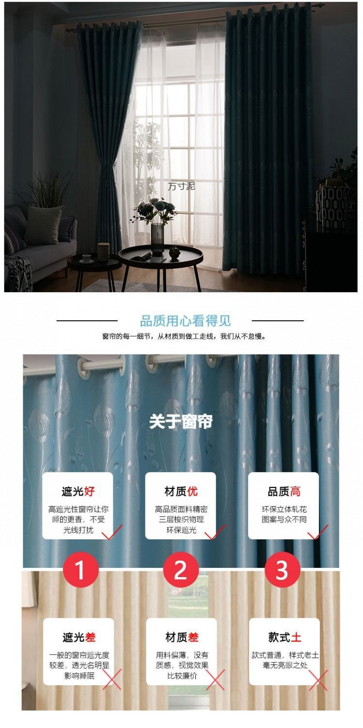 특가 커튼, 두꺼운 커튼 원단, 완제품 침실 거실 발코니 무타공 암막커튼, 임대주택 공급망