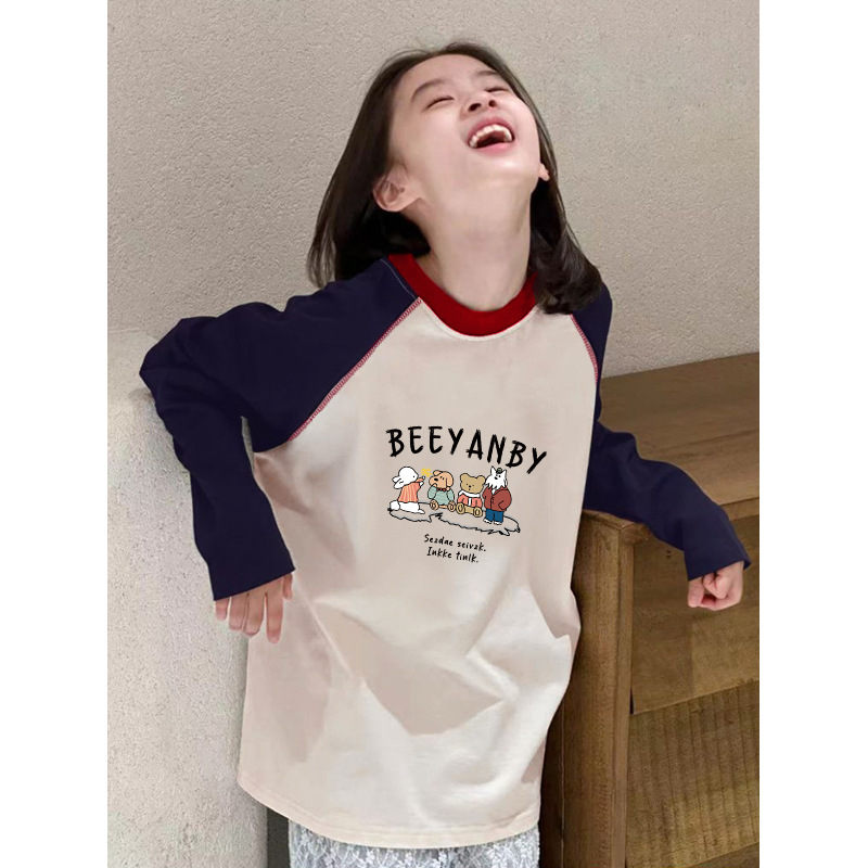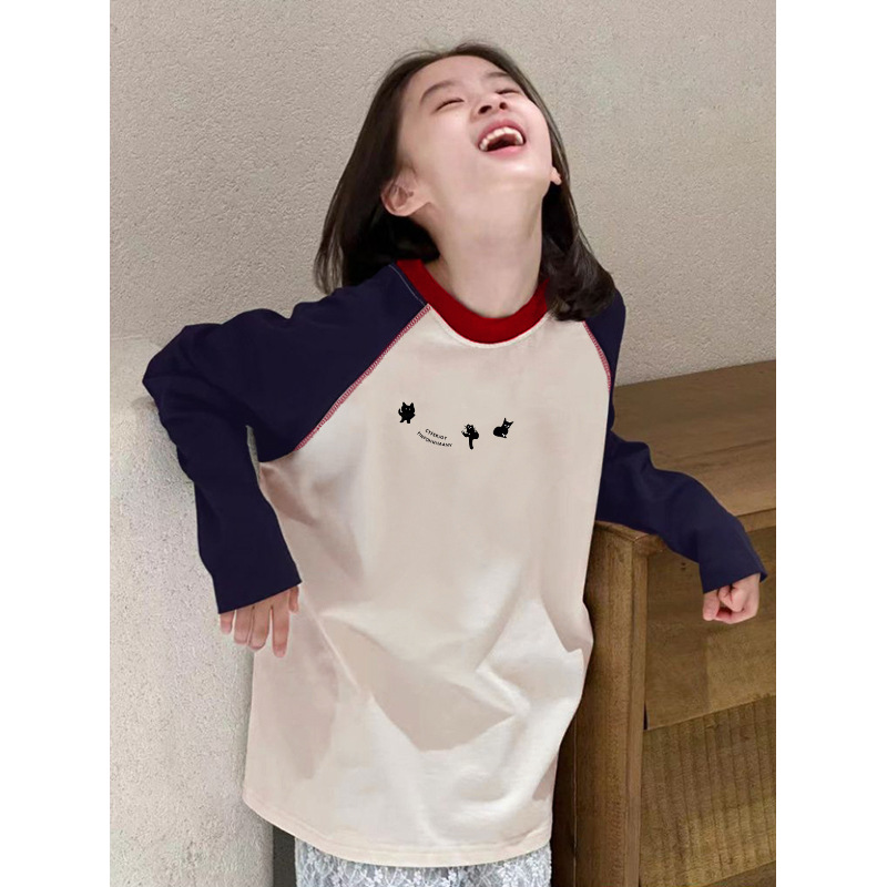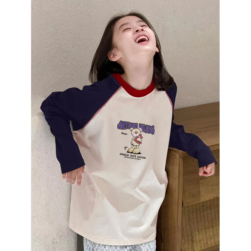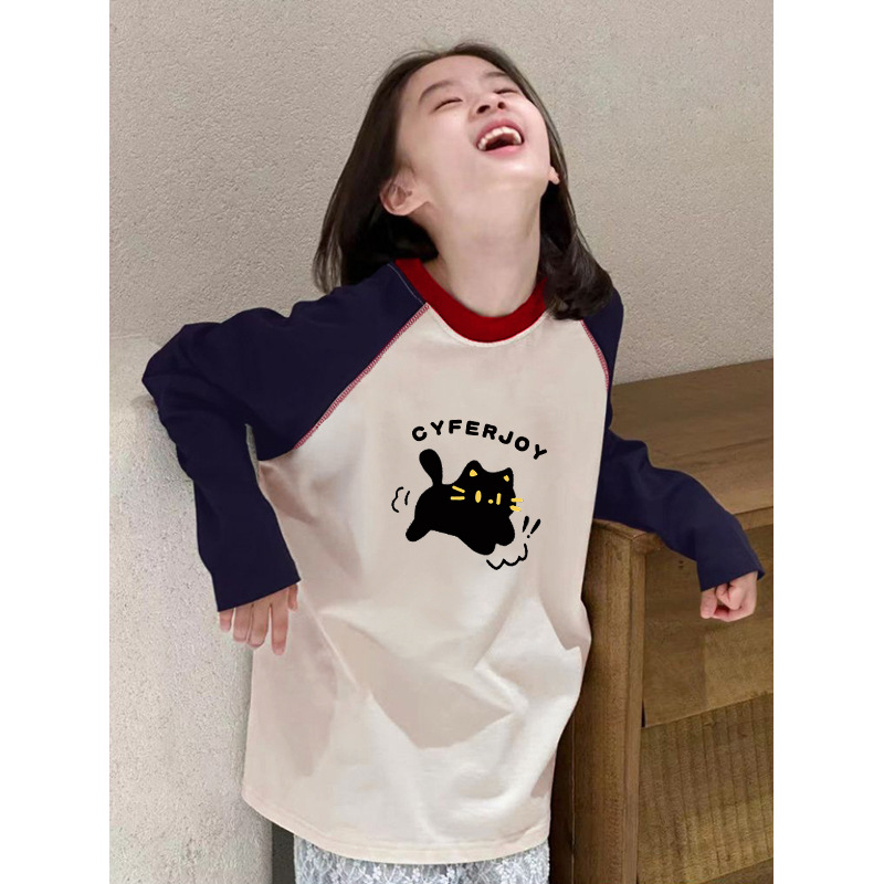 소녀 바느질 면화 긴팔 티셔츠 봄과 가을 어린이 6-12 세 중 큰 어린이 만화 캐주얼 라글란베이스 셔츠스토어 가기
