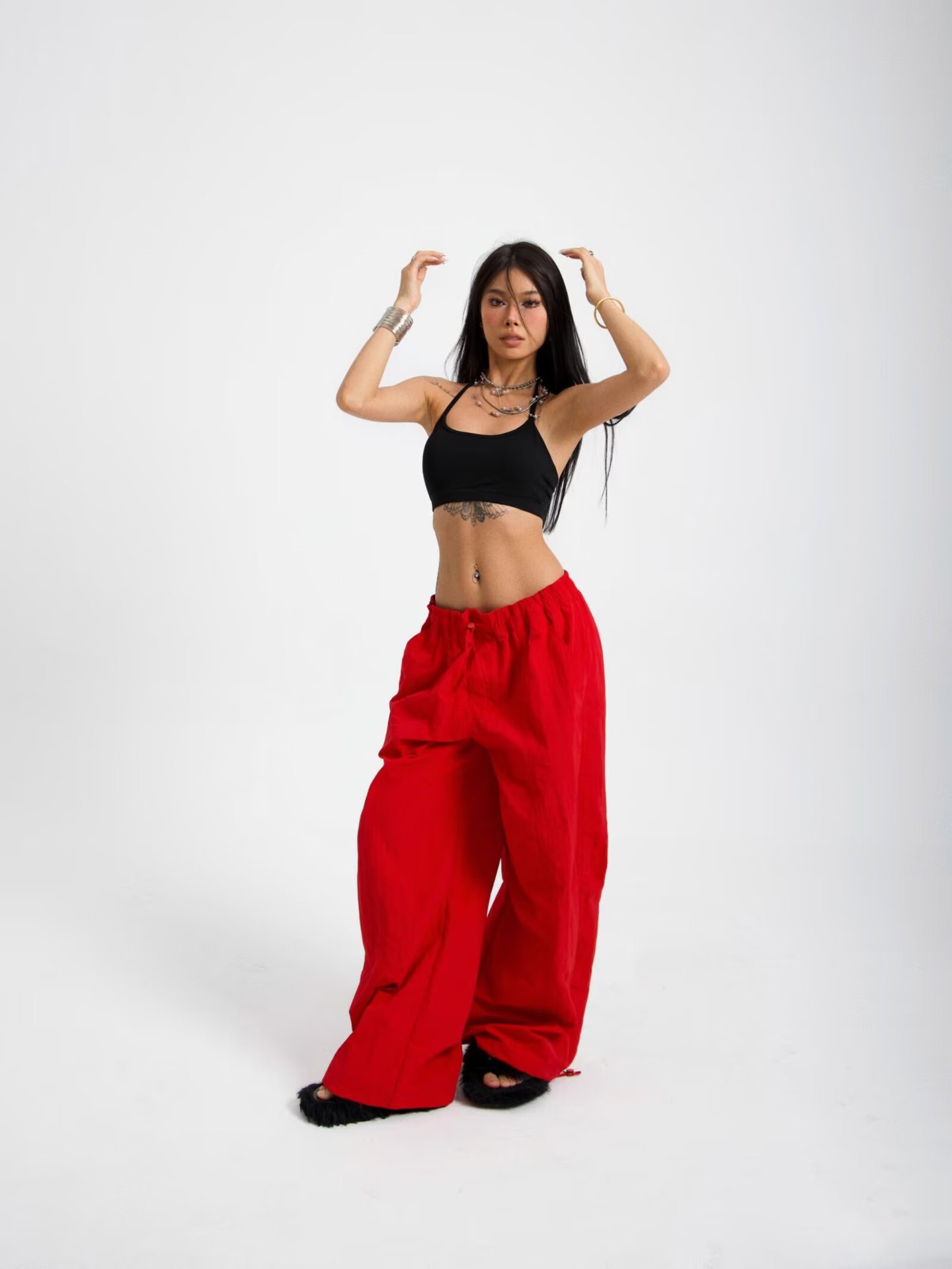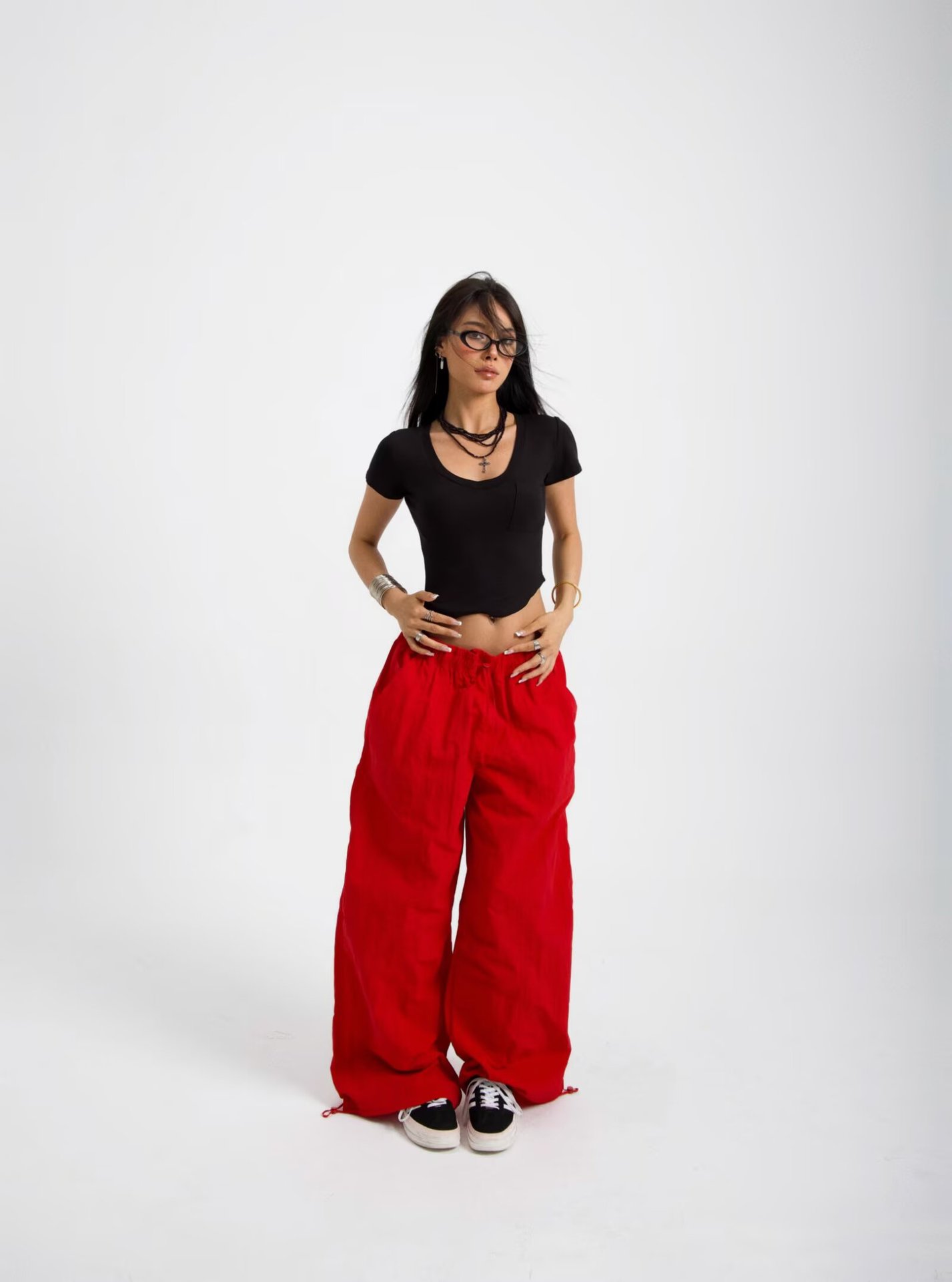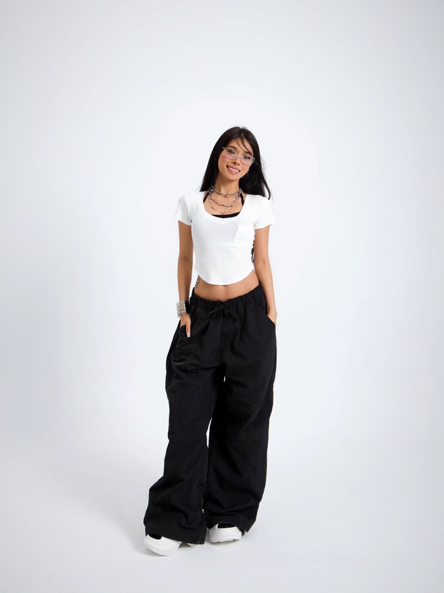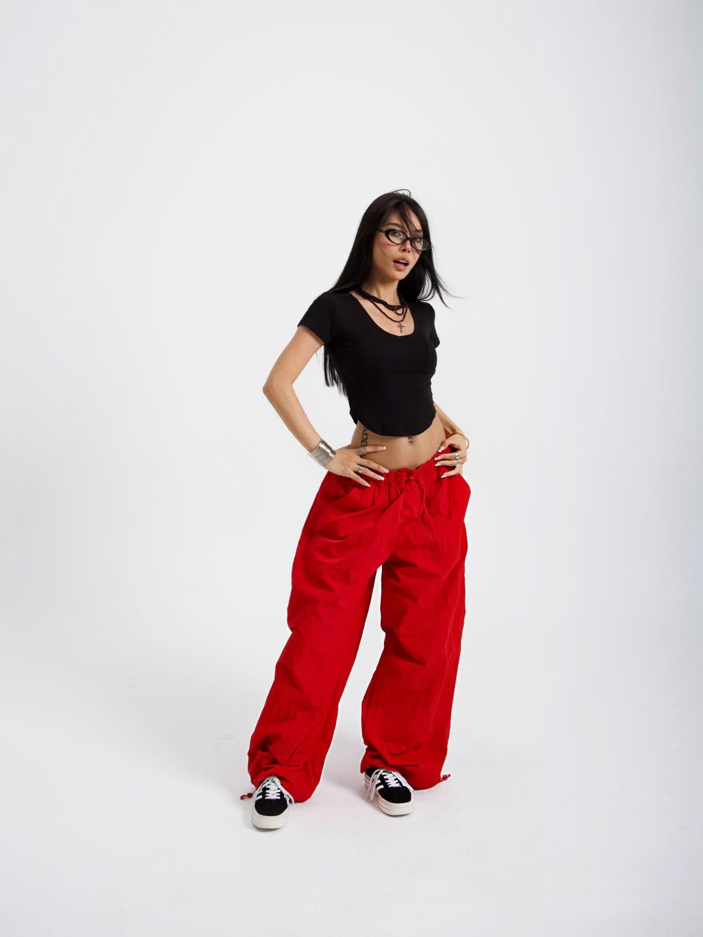 아메리칸 스타일 레트로 올매치 심플한 와이드 레그 오버볼 여성의 2025 년 봄과 여름 느슨한 캐주얼 스트레이트 트렌디 러킹 팬츠