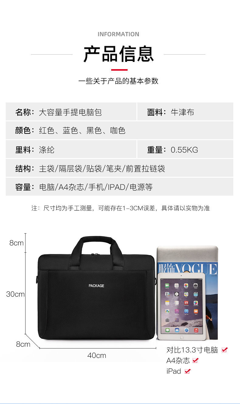 크로스보더 15.6inch 노트북 태블릿 가방 토트백 고급 출장 서류 가방 휴대용 통근 방수스토어 가기