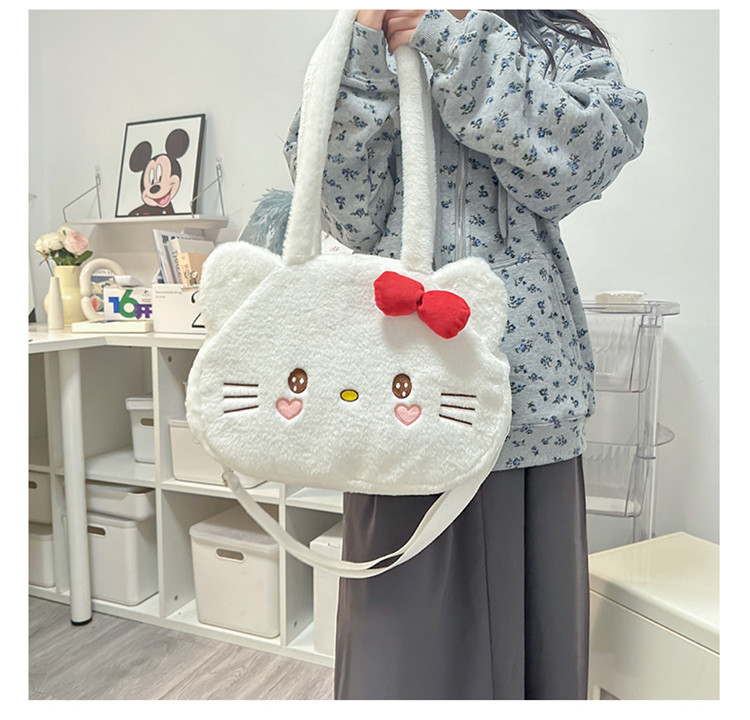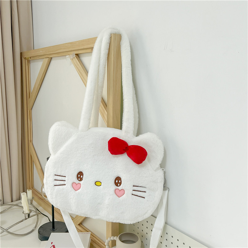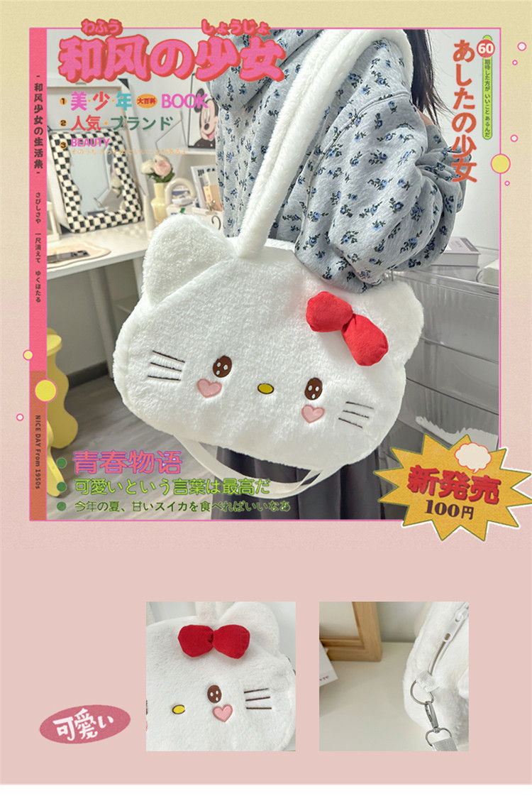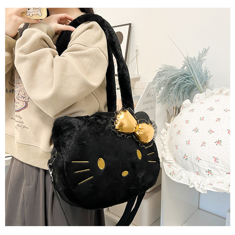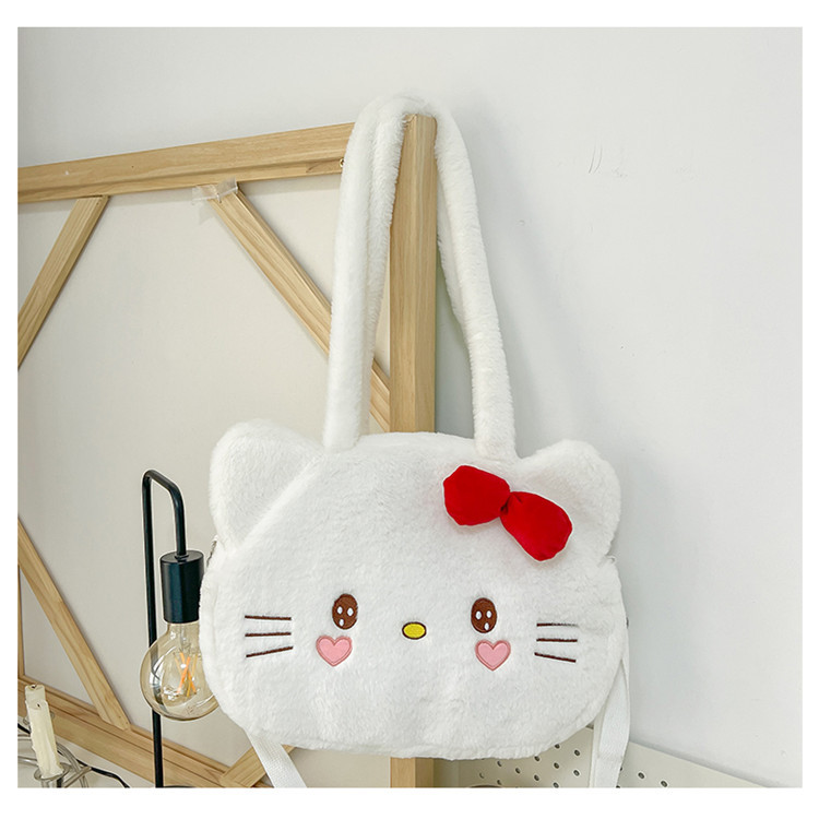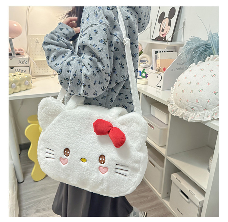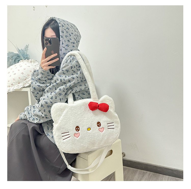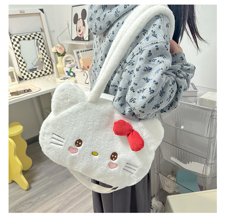 플러시 숄더 백 여성 대용량 새 키티 고양이 귀여운 학생 핸드백 만화 부드러운 소녀 크로스 바디 백