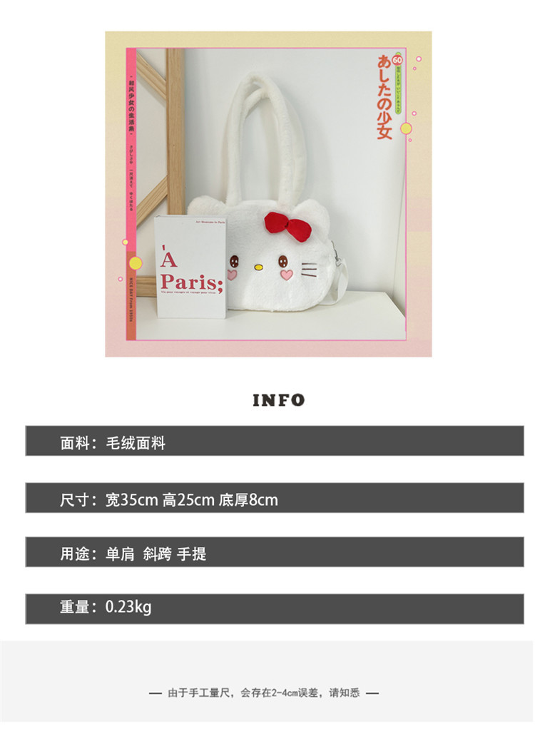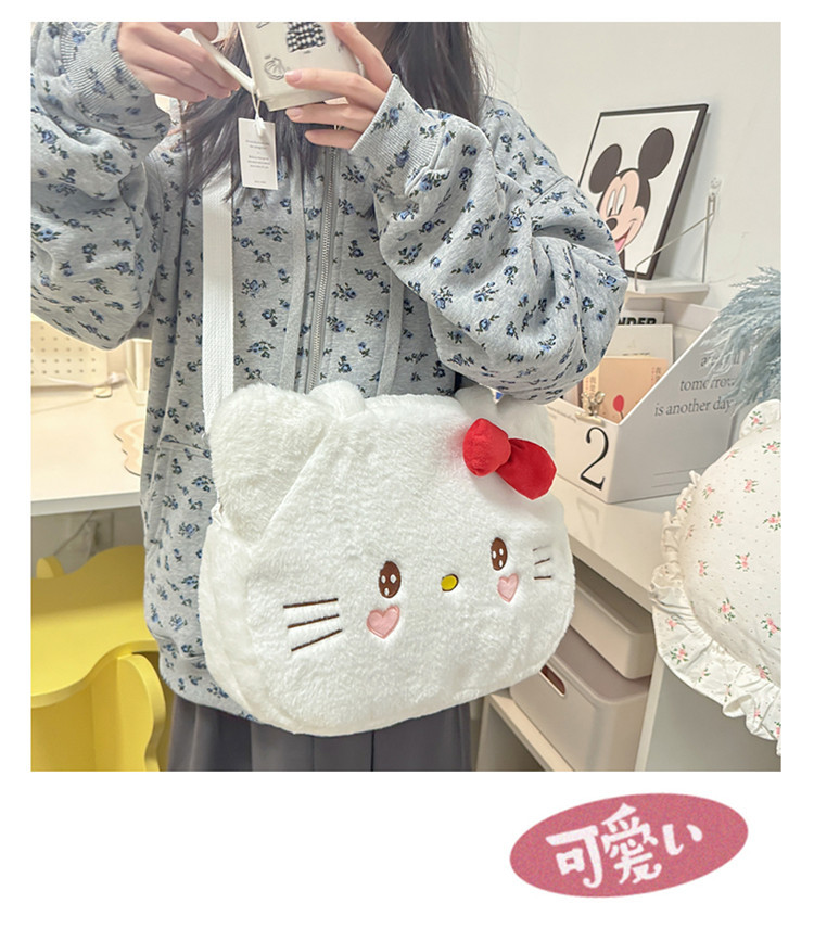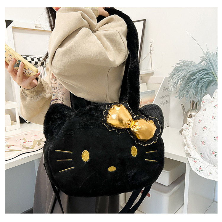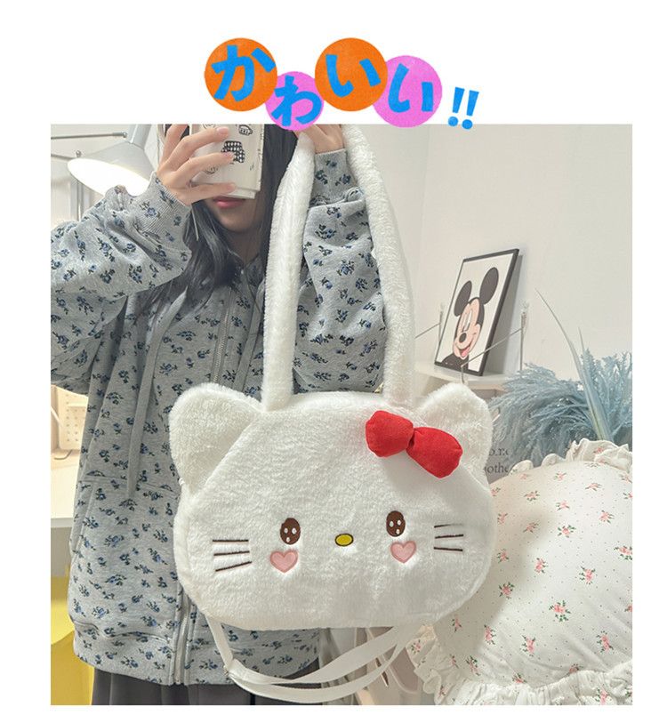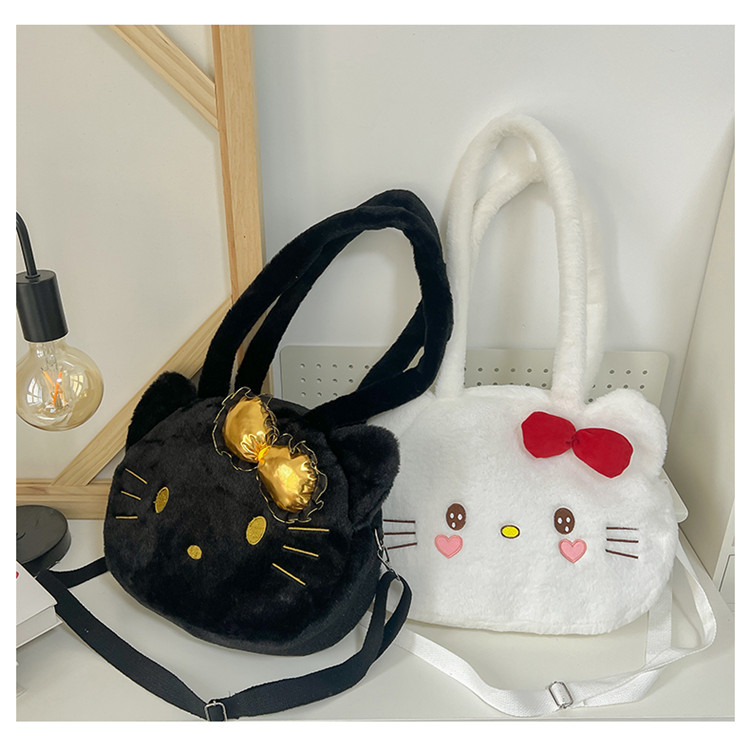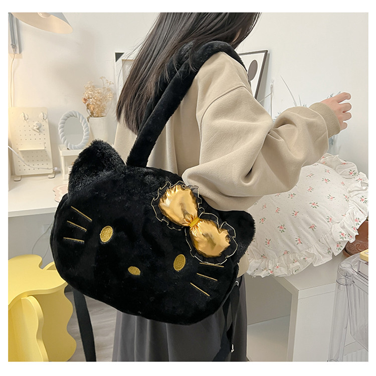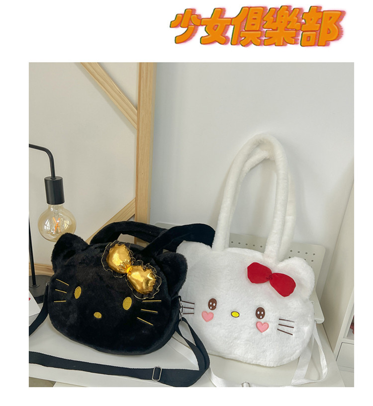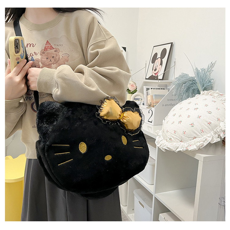 플러시 숄더 백 여성 대용량 새 키티 고양이 귀여운 학생 핸드백 만화 부드러운 소녀 크로스 바디 백