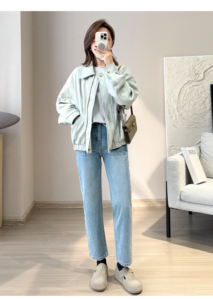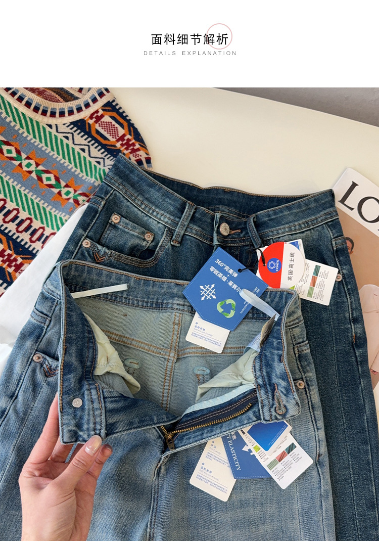 料上采用360°完美弹牛仔料,ykk拉链,英国高士线