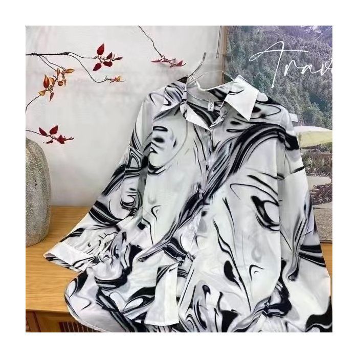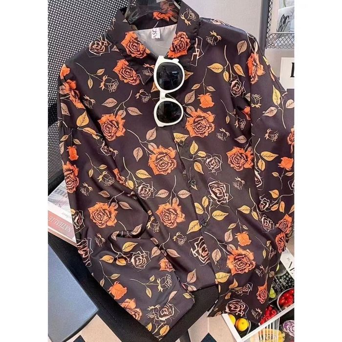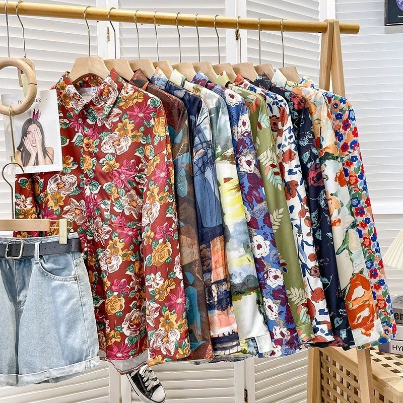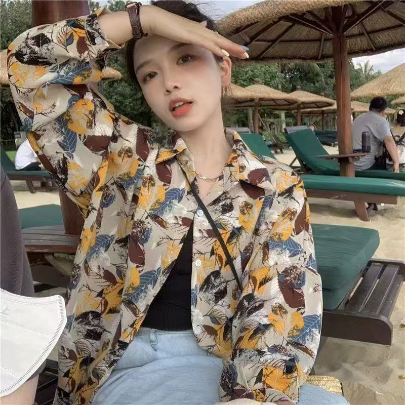 [셔츠 컬렉션] 레트로 홍콩 스타일 캐주얼 프린트 긴 소매 셔츠 여성의 여름 새로운 느슨한 캐주얼 꽃 셔츠