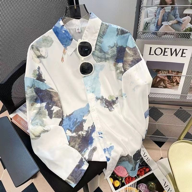 [셔츠 컬렉션] 레트로 홍콩 스타일 캐주얼 프린트 긴 소매 셔츠 여성의 여름 새로운 느슨한 캐주얼 꽃 셔츠스토어 가기