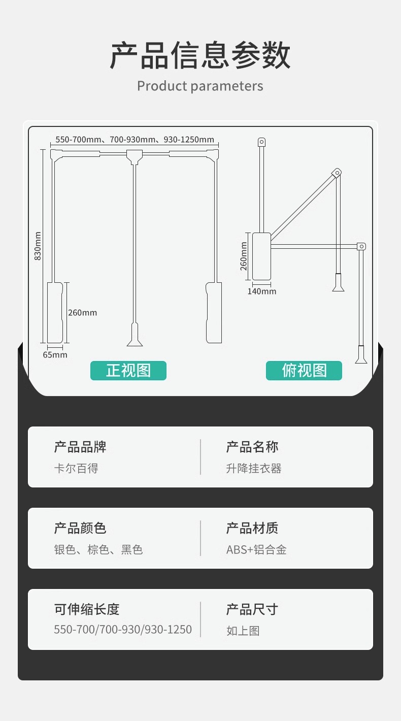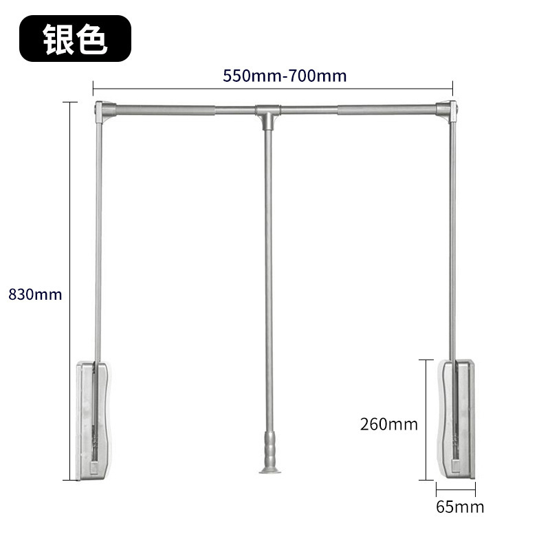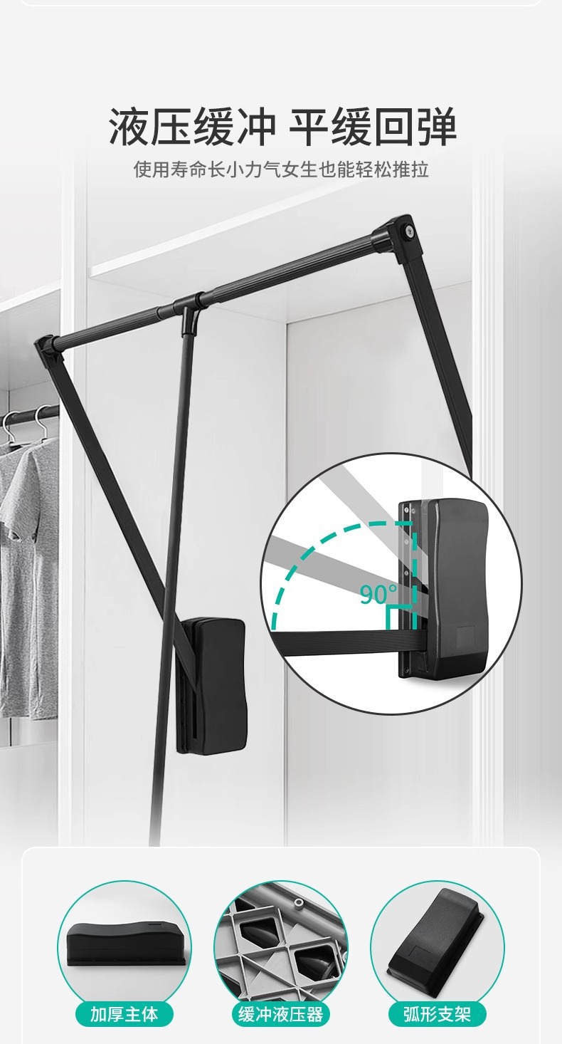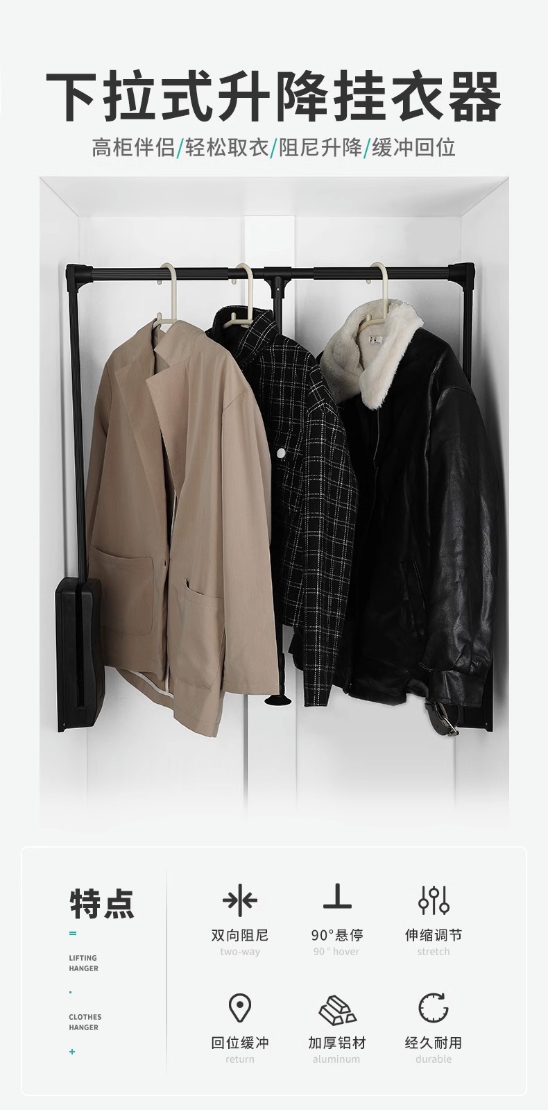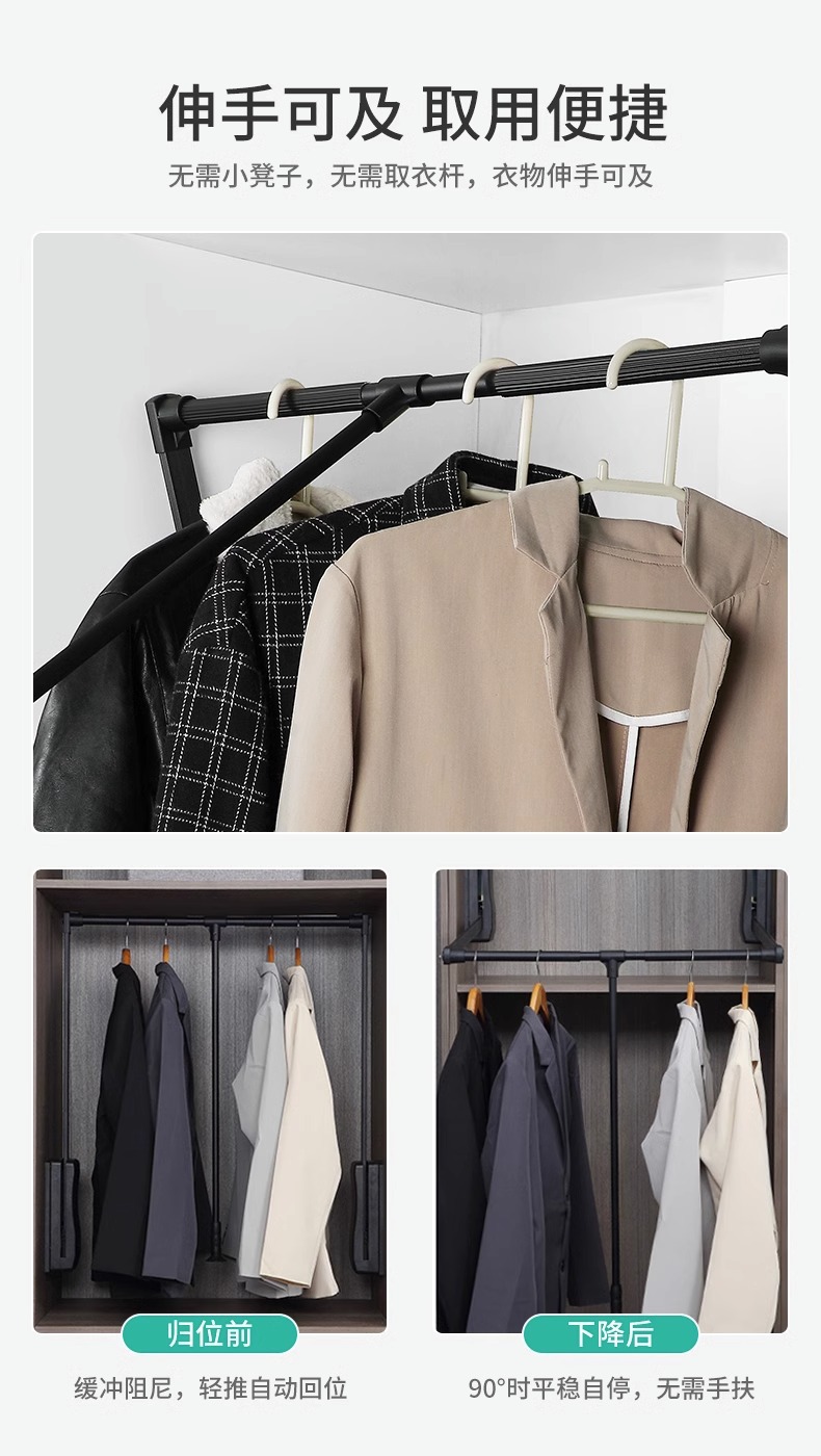 드롭다운식 리프팅 옷걸이 봉, 신축형 높이 조절 옷장 내부 이중 완충 옷걸이 봉, 옷걸이 가로 봉, 두꺼운 금속