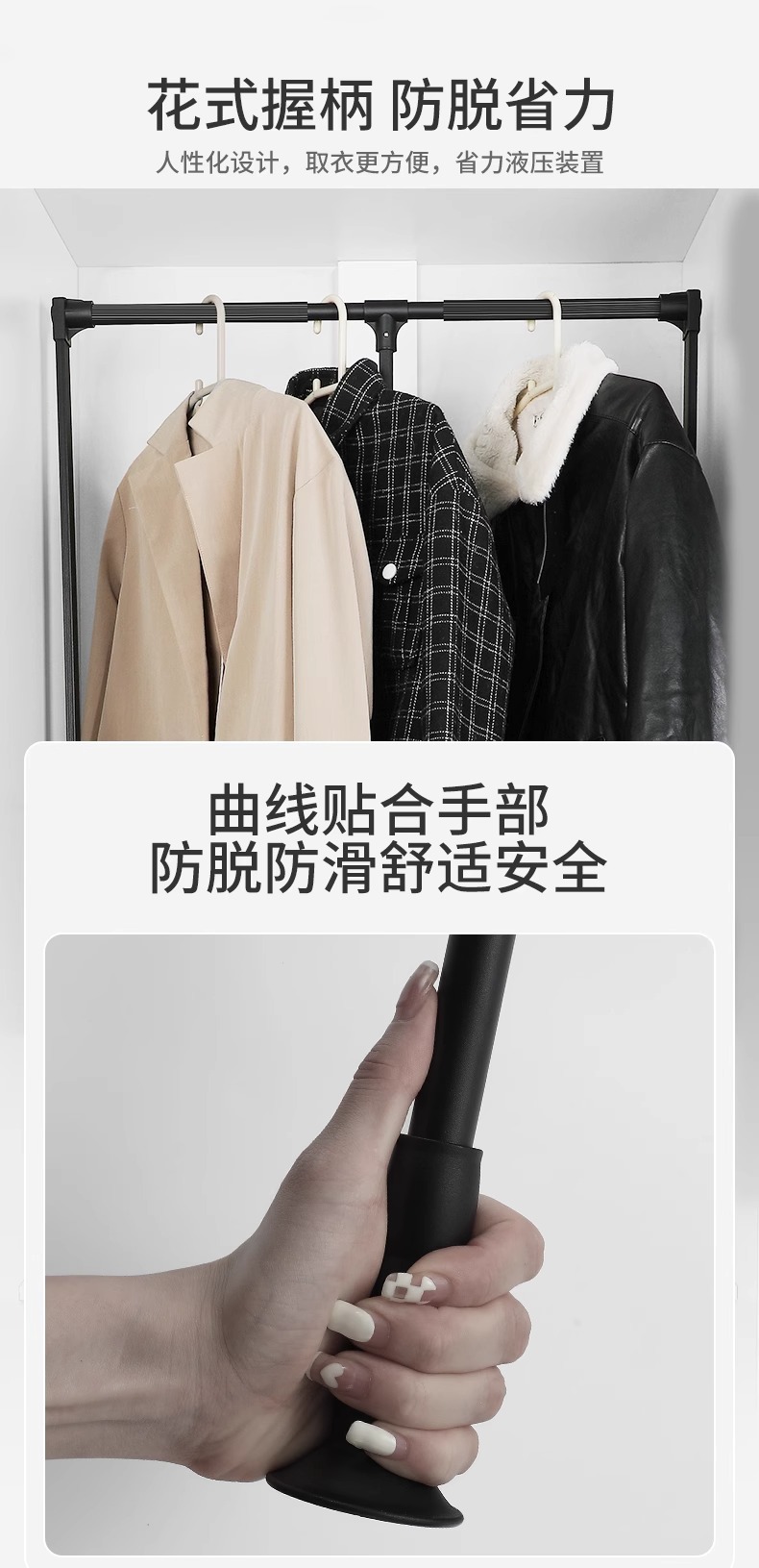 드롭다운식 리프팅 옷걸이 봉, 신축형 높이 조절 옷장 내부 이중 완충 옷걸이 봉, 옷걸이 가로 봉, 두꺼운 금속스토어 가기