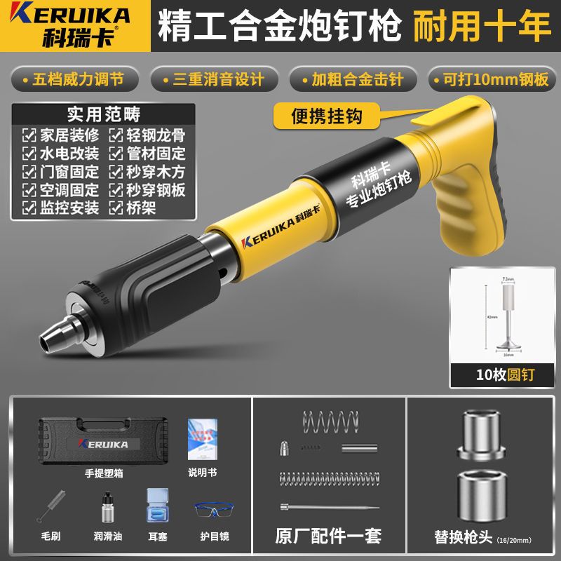 • 새롭게 업그레이드된 품질 88세대 소음기 고정식 네일건 - [1대 모델] 네일건 10발 + 오리지널 예비 부품 패키지