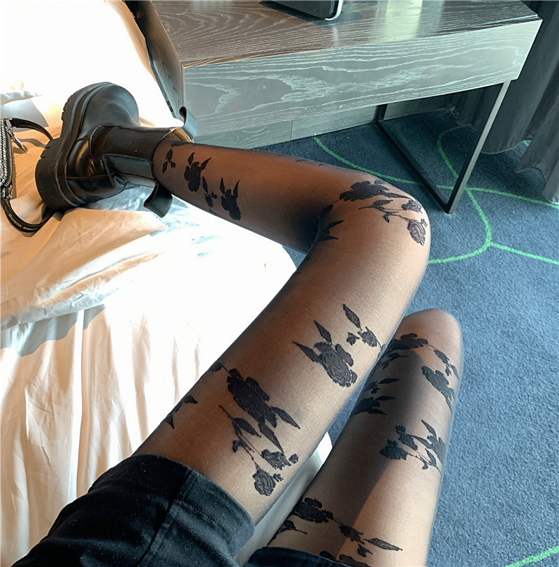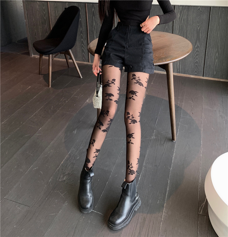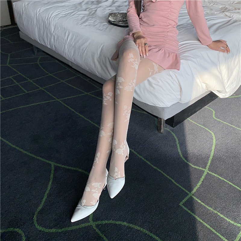 국경 간 프랑스 소녀 부드러운 바람 요정 뷰티 양말 화이트 레트로 로즈 자카드 안티 훅 실크 팬티 스타킹 여성스토어 가기